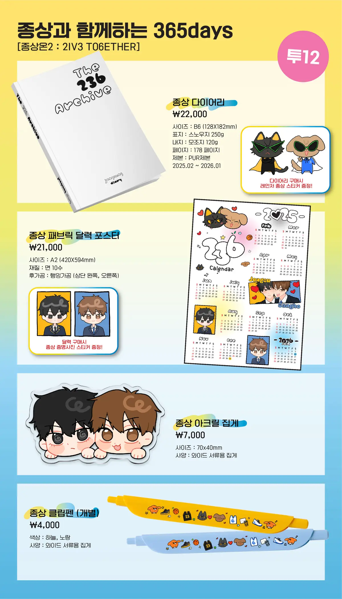 2025년2월 종상온 2에서 판매할 비공식 굿즈 현장수령 & 통판 폼입니다.