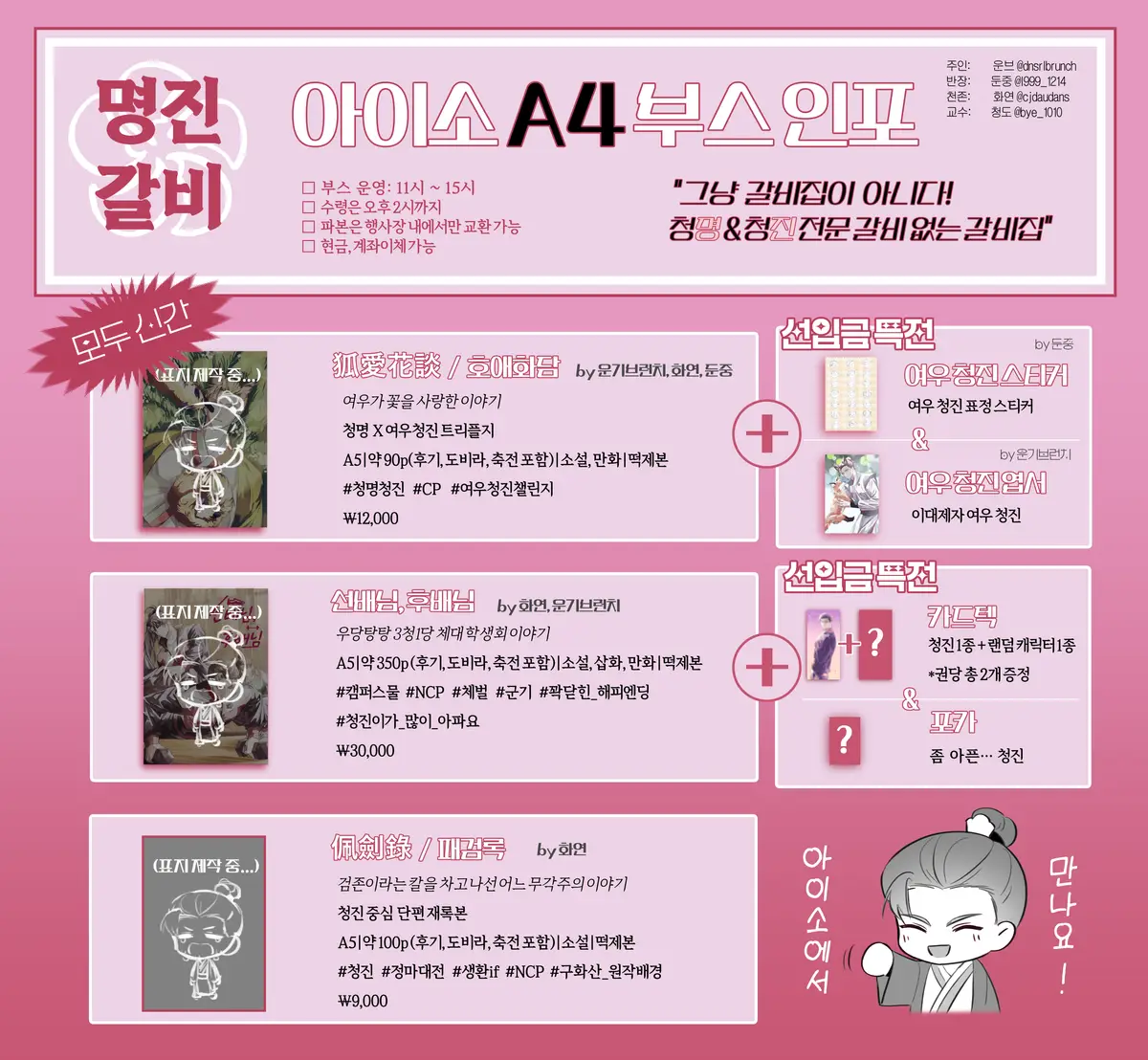 * <패검록>은 단편 재록본으로 총 다섯 편의 청진 중심글로 구성되며, 4편은 포스타입 발행+1편은 회지에만 포함됩니다.