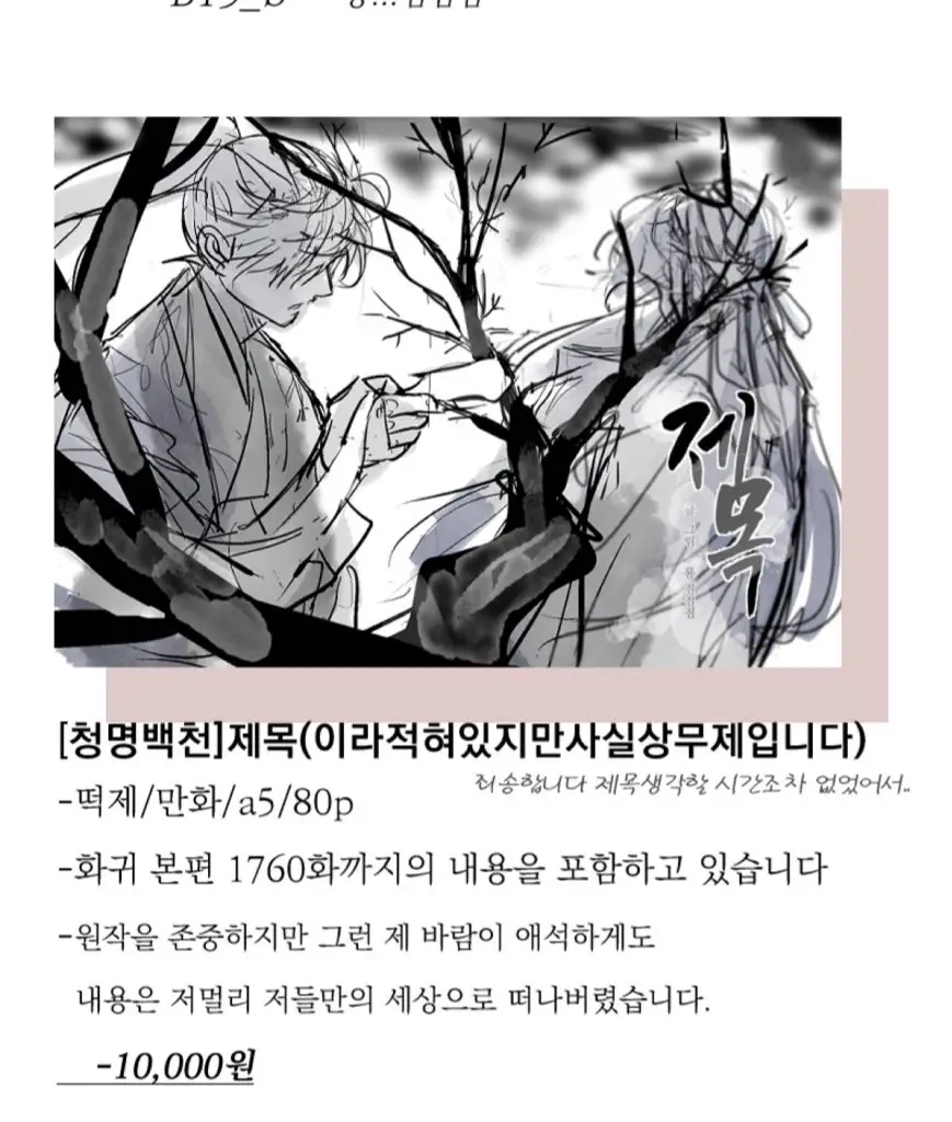 네, 보시는 바와 같습니다 1월 아이소 청백쁘띠존에서 판매한 청명백천 회지입니다 감사합니다