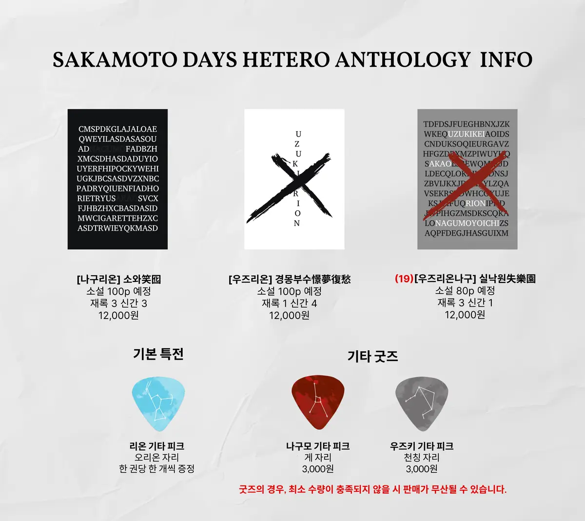 ※ 굿즈의 경우, 최소 수량이 충족되지 않을 시 판매가 무산될 수 있습니다. 환불폼 계좌를 꼭 적어주세요!