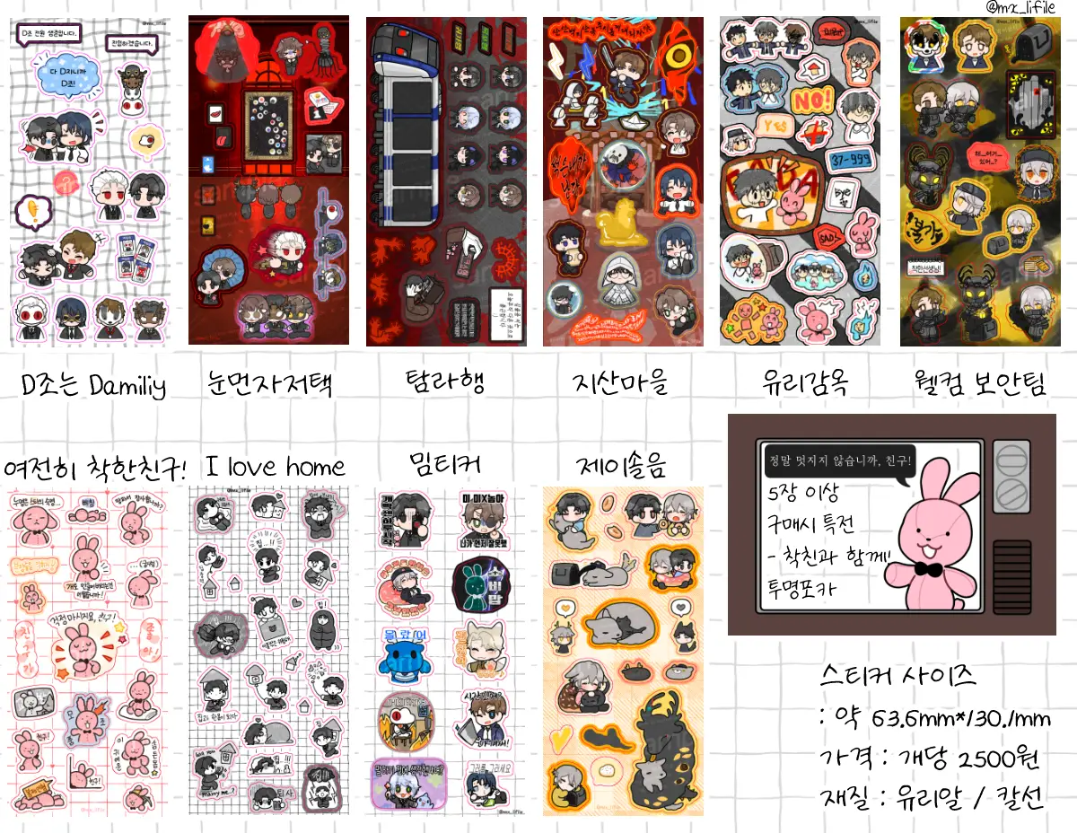 (괴담출근 스티커 종류 상관없이 5장 이상 당 특전 1장이며, 10장 구매시 2장, 5 x n장 구매시 n장 증정합니다.)