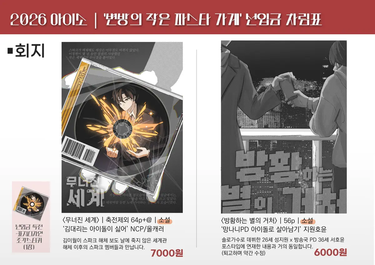 회지가 수요조사 없이 바로 선입금에 들어가기 때문에 굿즈 마무리가 덜 된 상태에서 폼 올립니다.