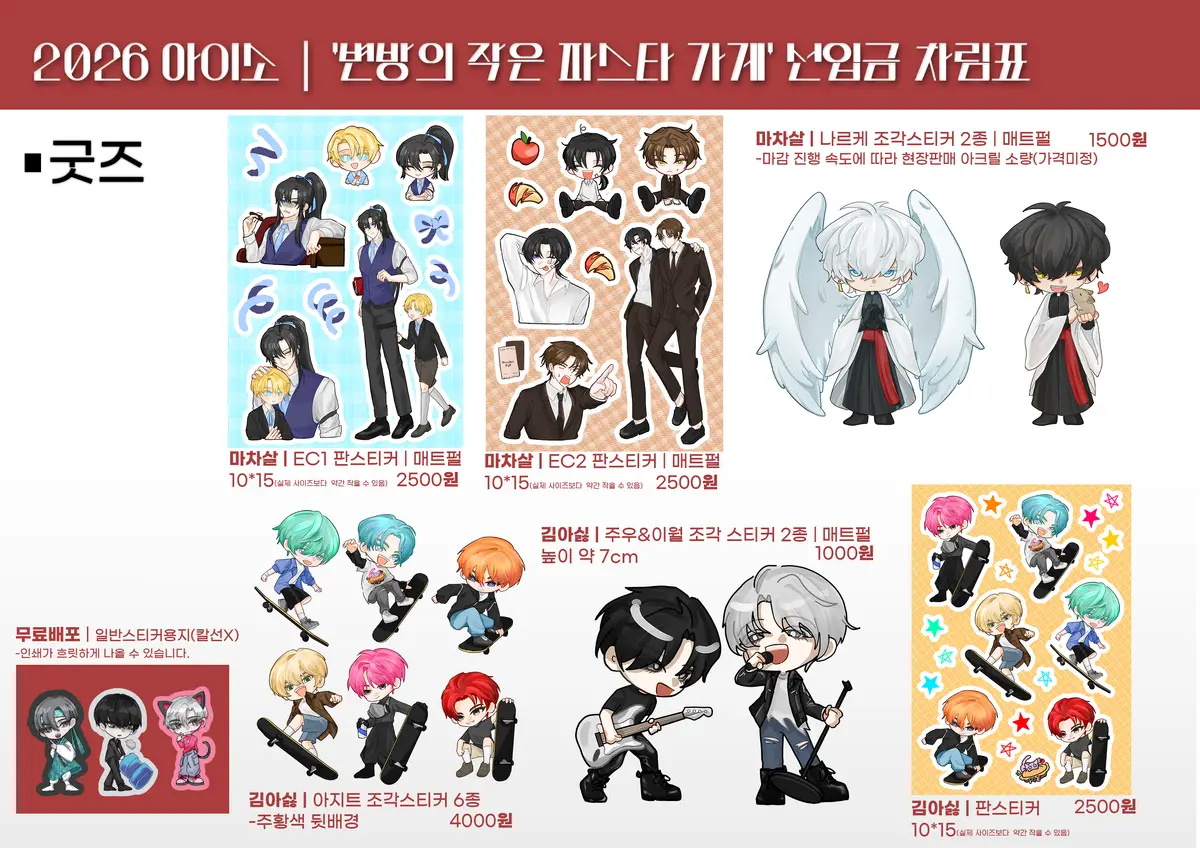 2026 아이소 파스타가게 / 김아싫 망아살 회지, 마차살 굿즈 현장수령