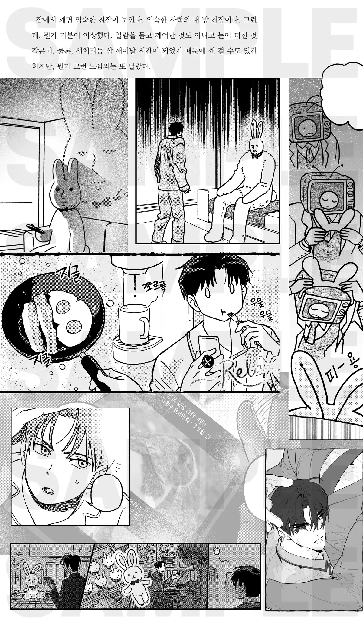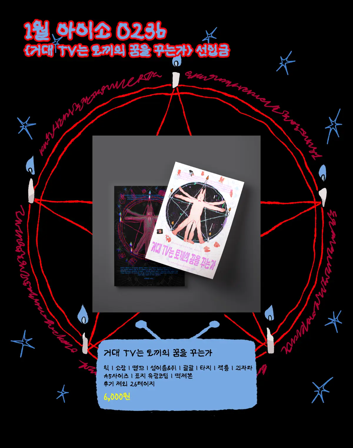 1월 18일 디페스타 아이소 O23b 부스에서 판매될 괴담출근 솔음x브라운 릴레이 앤솔로지 [거대TV는 토끼의 꿈을 꾸는가] 의 선입금 페이지입니다.