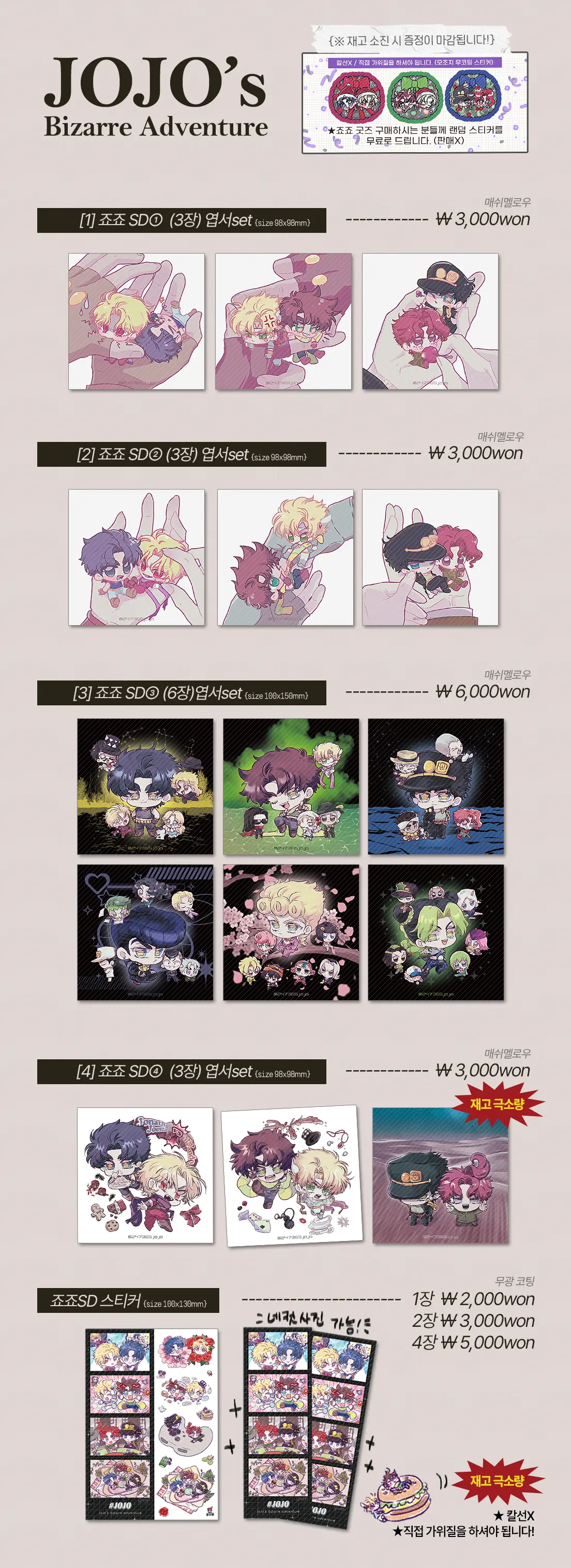 스티커 재고가 현재 소량만 남아있어서, 이번 통판을 마지막으로 구매가 가능한 점 참고 부탁드립니다~!