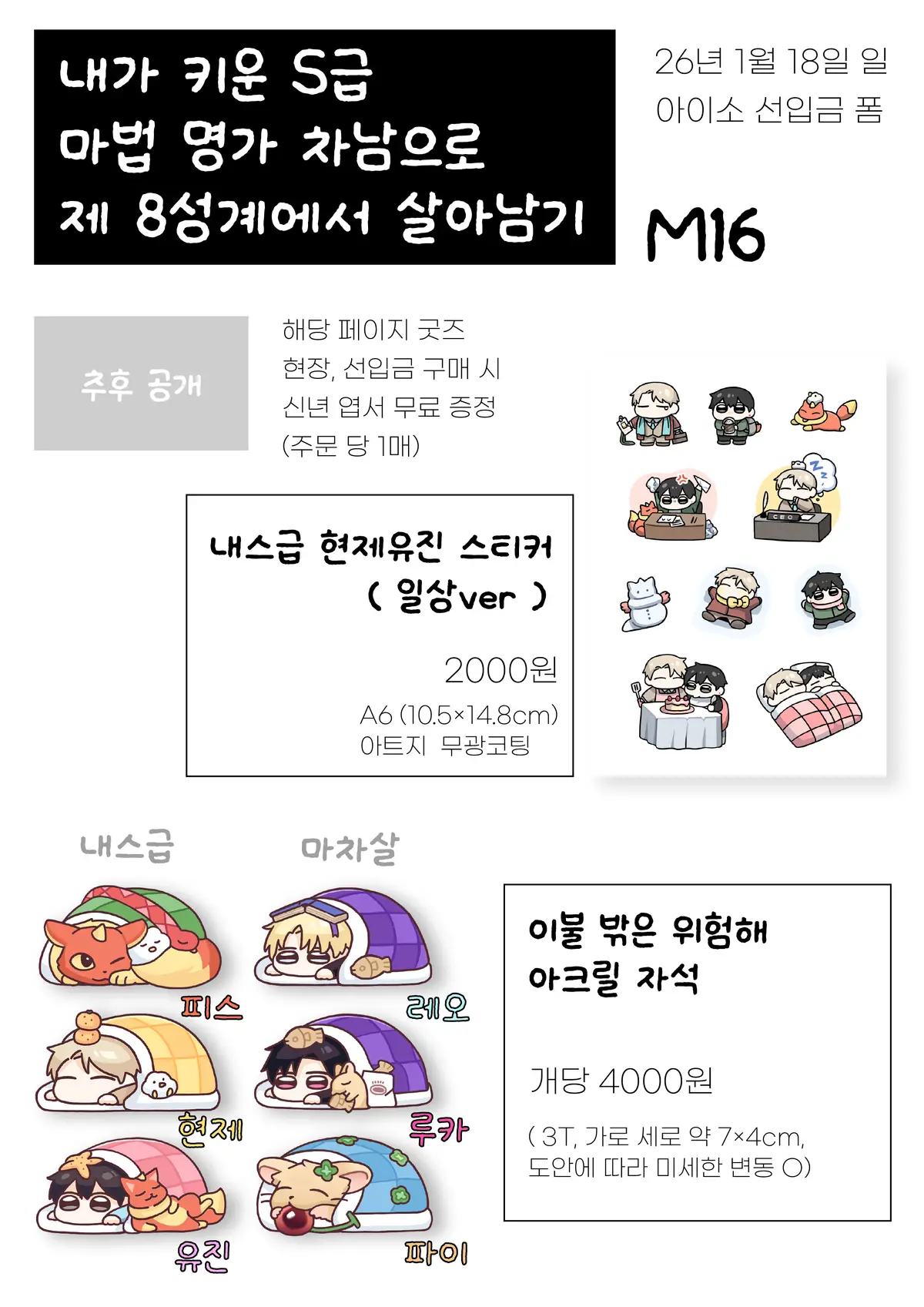 *내스급 현제유진 스티커 / 이불 밖은 위험해 아크릴 자석 구매 시 신년 엽서가 증정됩니다. (1인 1매 한정)