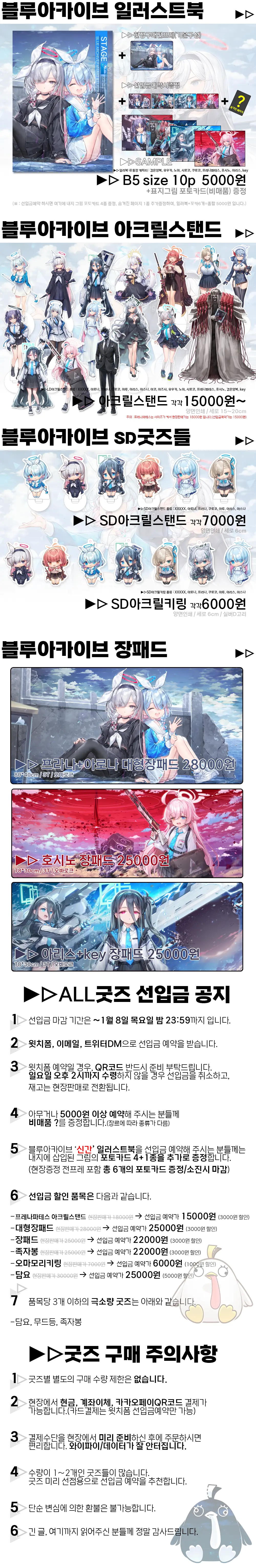 위 굿즈들은 선입금 예약을 추천합니다.