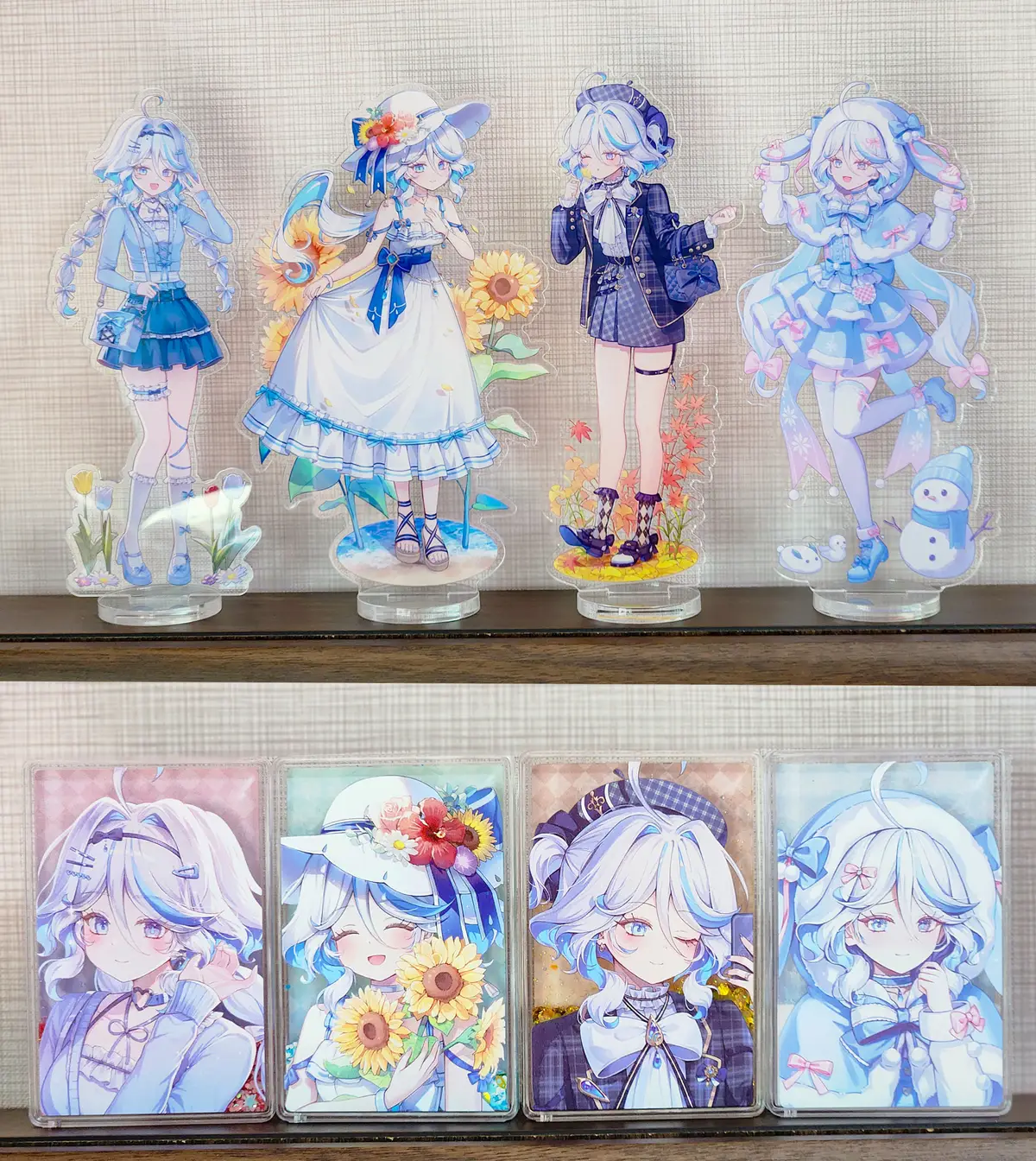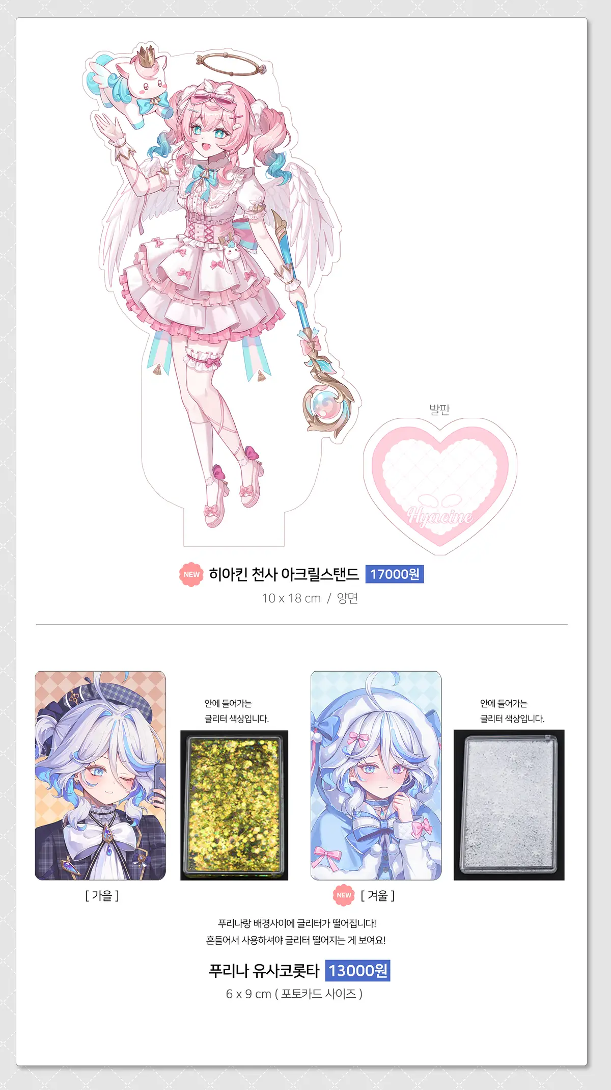 아크릴과 지류 굿즈 표면에 공정상 자잘한 하자와 밀림이 조금씩 있을 수 있습니다.