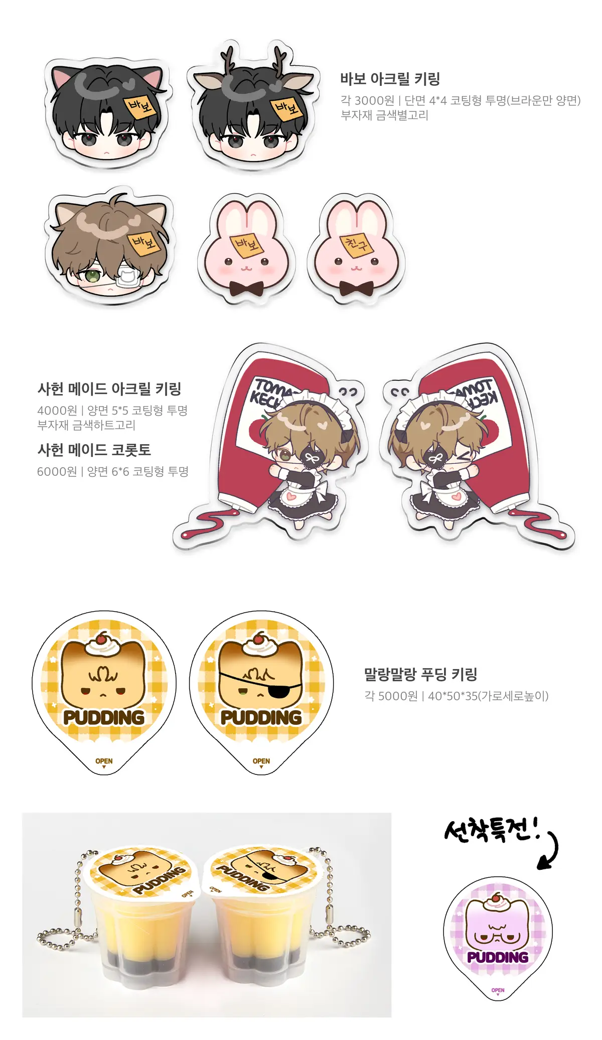 푸딩 키링을 제외한 다른 품목 이후 재판X