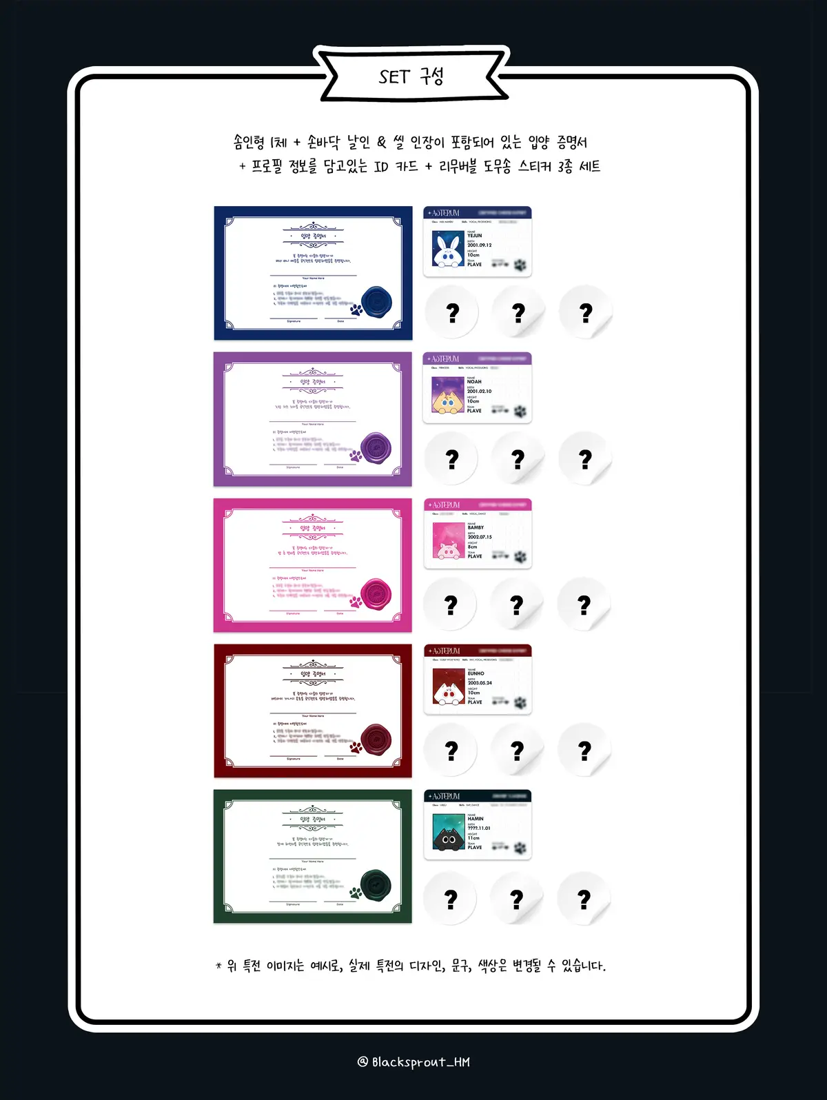 - 제작 진행 상황 및 발송 안내는 X (@Blacksprout_HM) / 윗치폼 공지를 통해 안내드립니다.