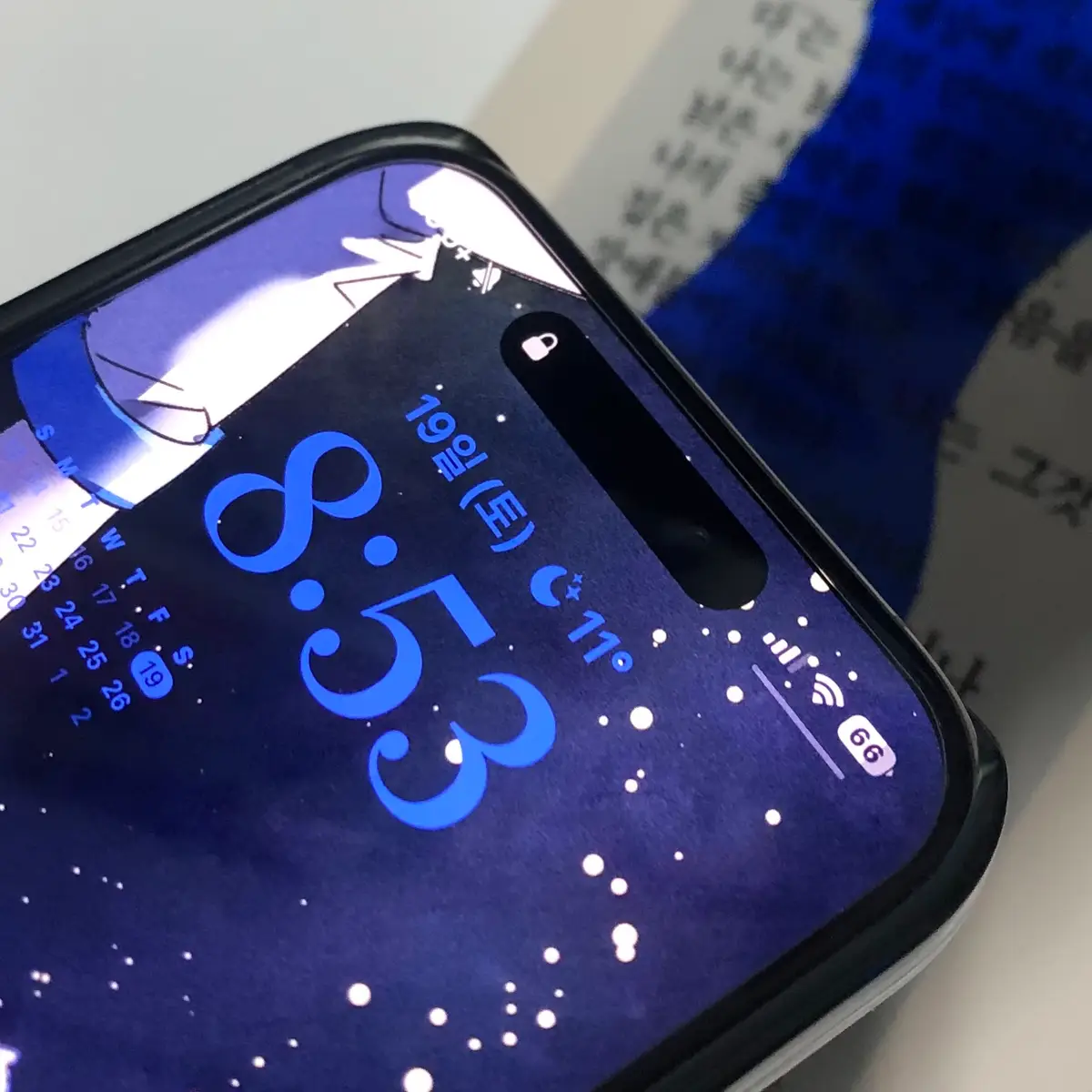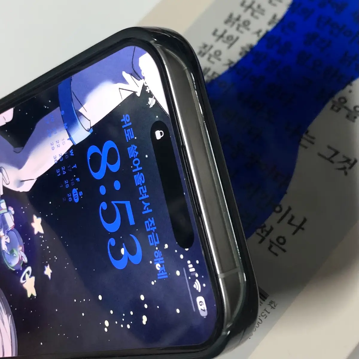 아이폰 15 PRO + 카드 수납 하드 케이스 스카이블루 착용 예시