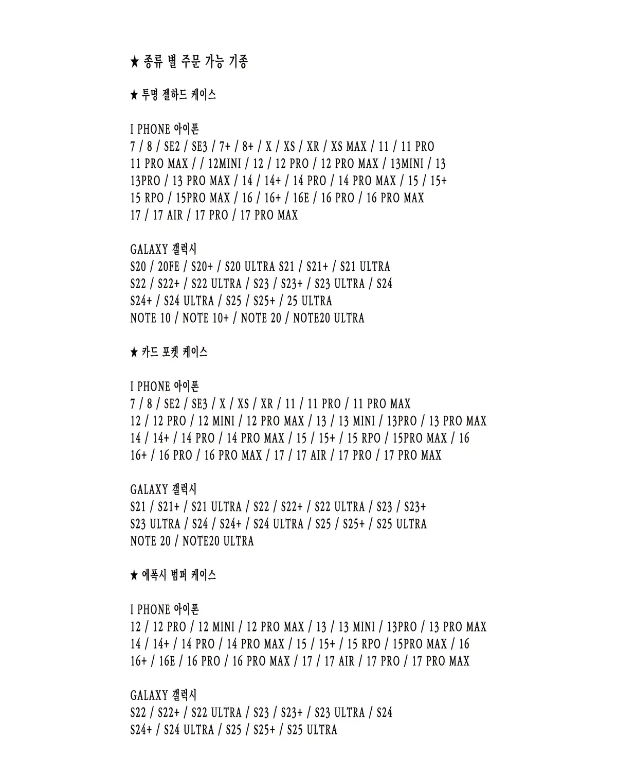 ★ 케이스 종류에 따라 주문 가능한 기종이 다르기 때문에