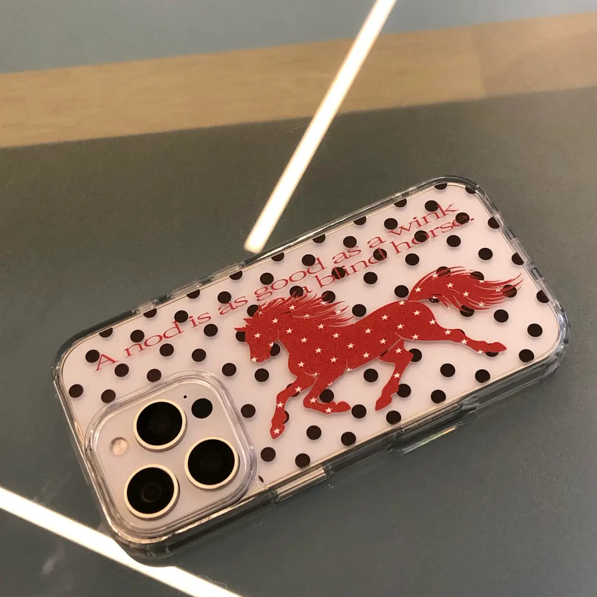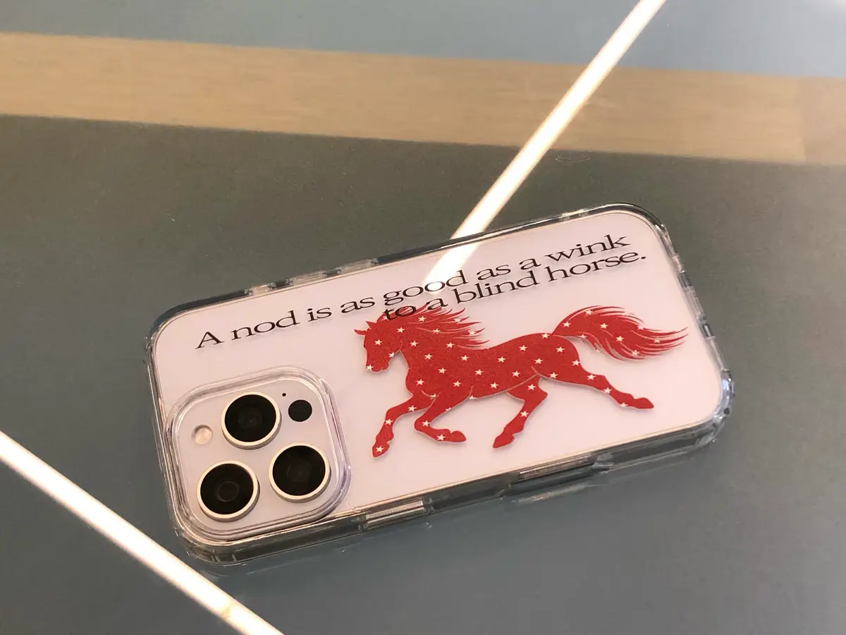 아이폰 15 PRO 화이트 티타늄 + 투명 젤 하드 케이스 착용 예시