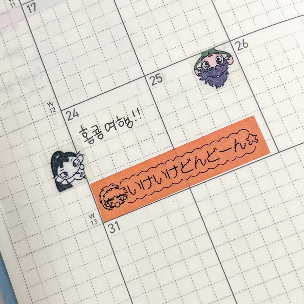아래쪽 <~할만두> 스티커는 다이어리 위클리에 거의 맞는 사이즈로 제작됩니다. (칼선 사이즈-24*18.5mm)