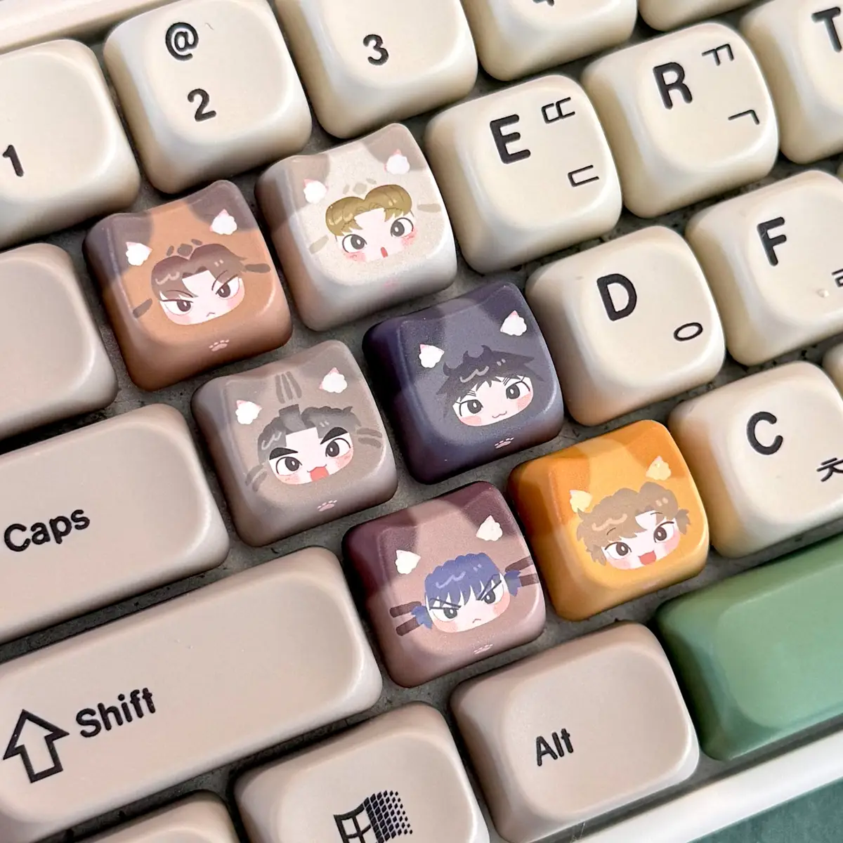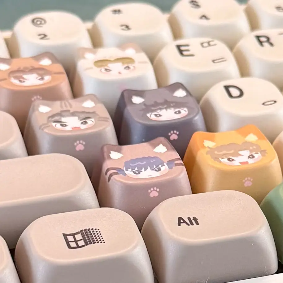 8. 냥타마 키캡 (케마이사 set/타케쿠쿠 set/리코마 set/쌍닌(코있) set/쌍닌(코없) set): 하단이 십자(+) 모양인 기계식 키보드용 키캡 - 7,000원
