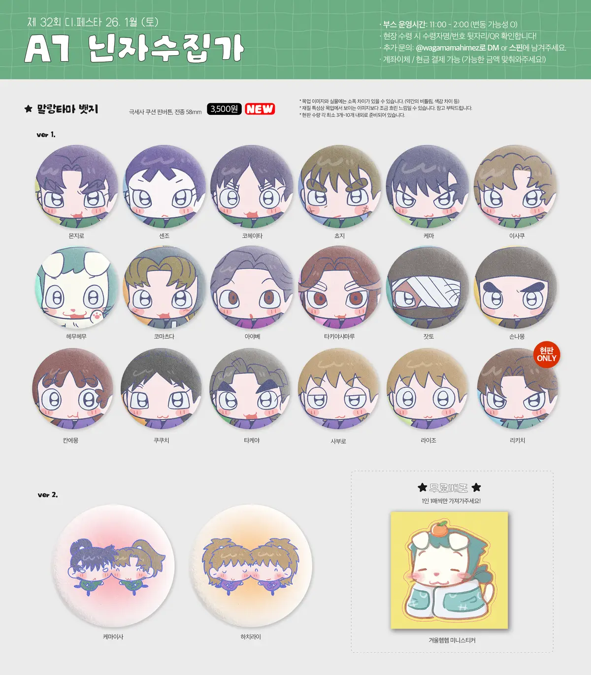 + 특전은 굿즈를 배송비 제외 만원 이상 구매하신 분들께 폼당 1개 제공됩니다. (선착순, 소진시 종료)