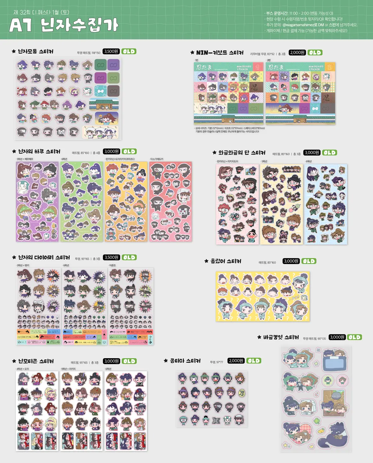 1. 닌자모둠 스티커: 118*150(mm), 투명 매트펄 - 3,500원