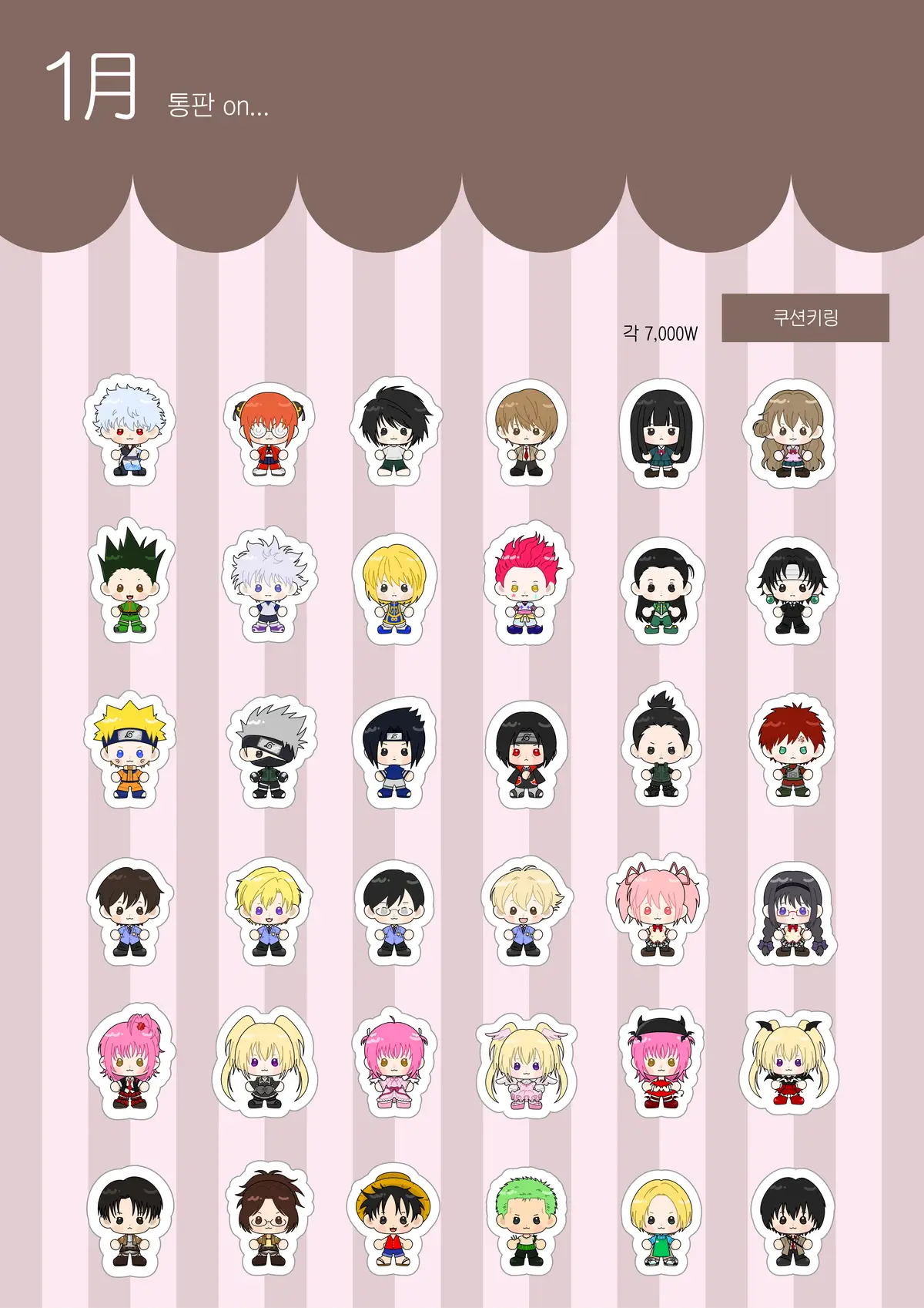 • 은혼/삼젯/헌헌/오란고교/히로아카/원피스: 약 55*150mm
