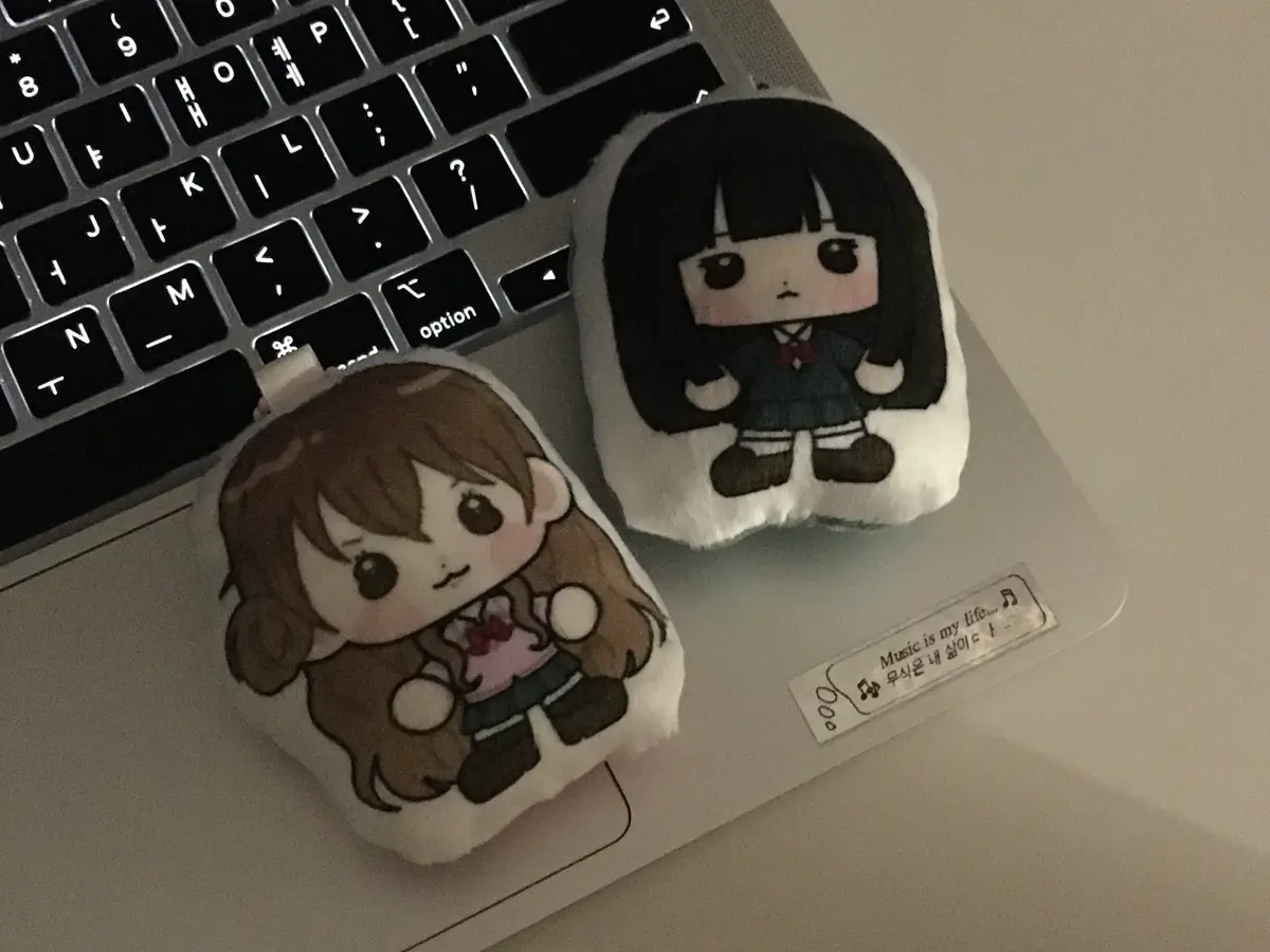 쿠션키링 2개와 스티커 여러장이 준등기 봉투에 함께 들어가는 경우,
