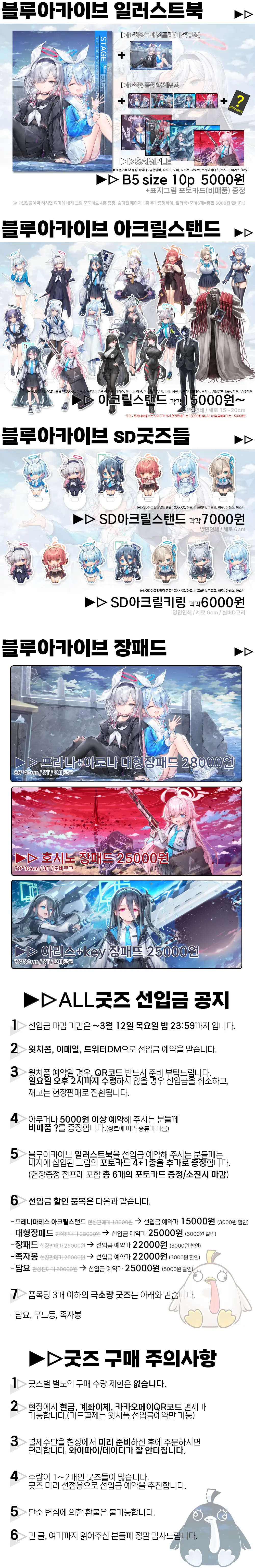 위 굿즈들은 선입금 예약을 추천합니다.