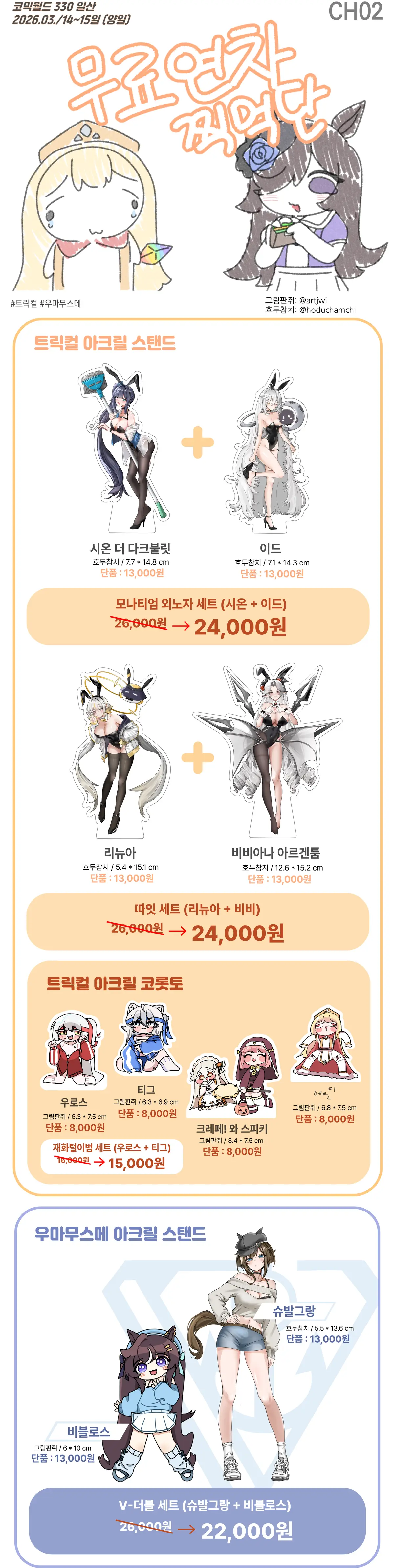 더하여, 본 스티커는 '에르핀 아크릴 코롯토'와 세트 상품으로 현장에서도 9,000원으로 세트 판매할 예정이니, 만약 에르핀 아크릴 코롯토를 구매하신 선입금자께서 본 상품에 관심이 있으실 경우에 1,000원을 내면 추가 구매가 가능할 예정입니다.