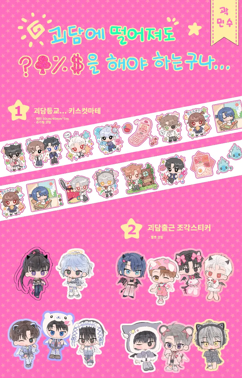 실제 스티커는 배경이 투명한 글리터펄 스티커로 제작됩니다.(괴담출근 키스컷마테와 동일한 재질)