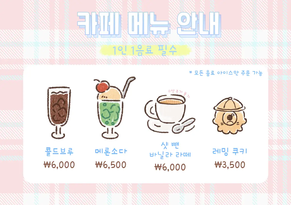 - 1인 1음료 주문이 필수이며, 현장에서 주문 및 결제해 주세요.