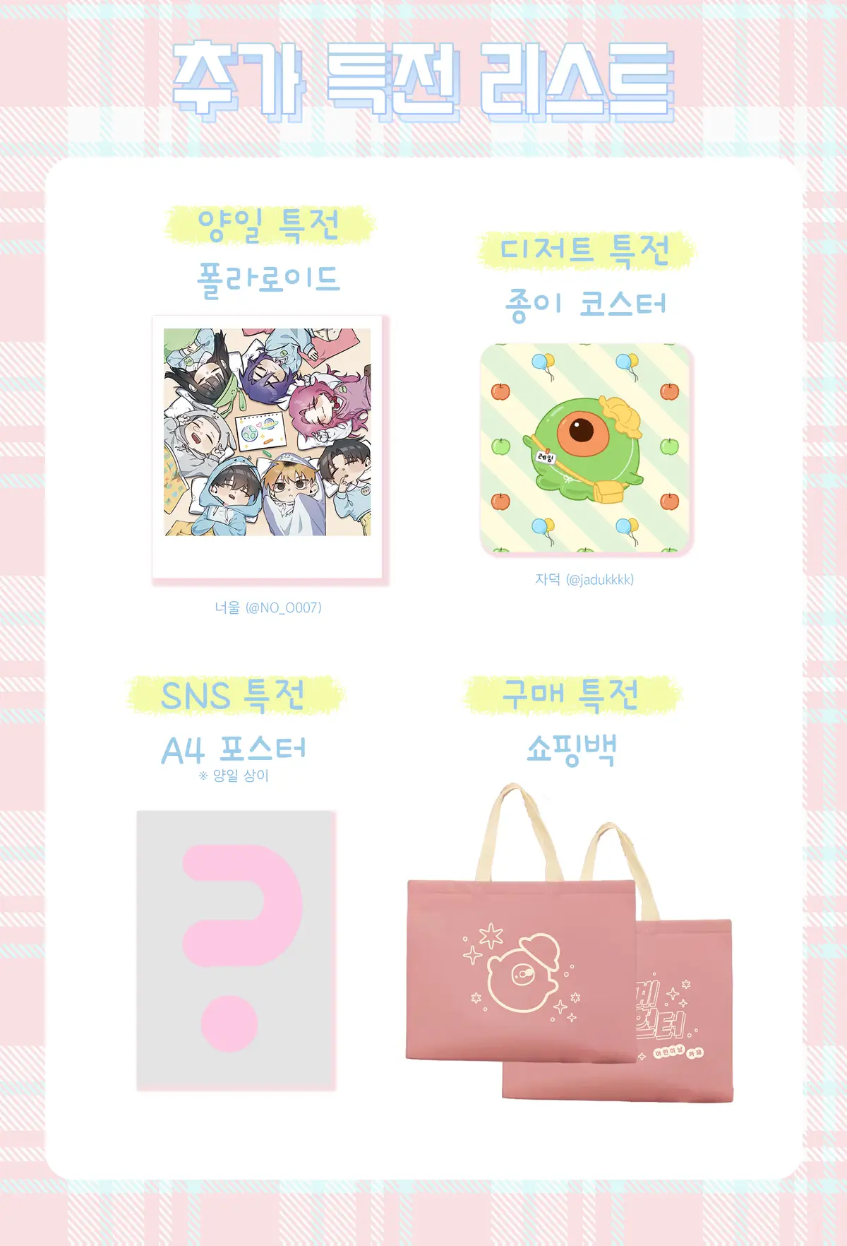 - SNS 특전: 트위터에 행사 후기를 업로드한 화면을 보여주시면 A4 사이즈 포스터를 증정합니다.