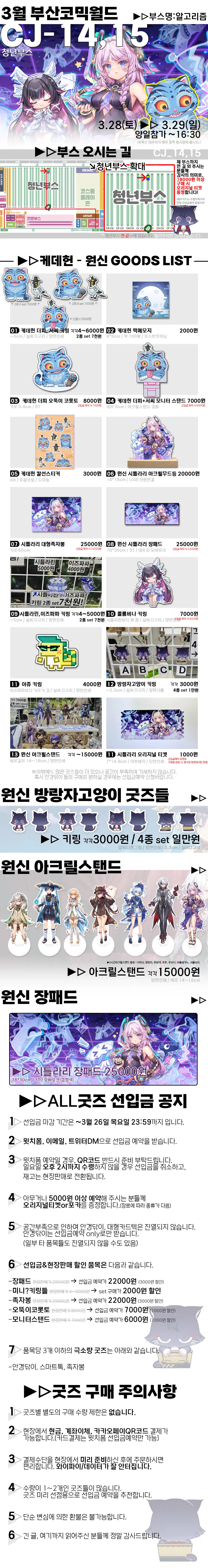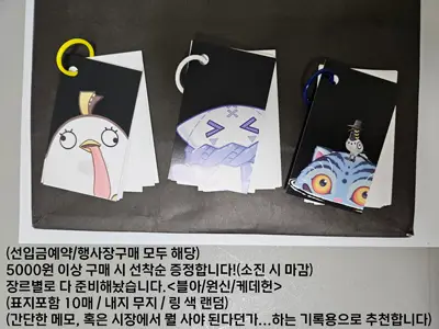 6. 카드텍, 안경닦이 등 일부 굿즈들 진열이 매우 어려울 가능성이 있습니다.