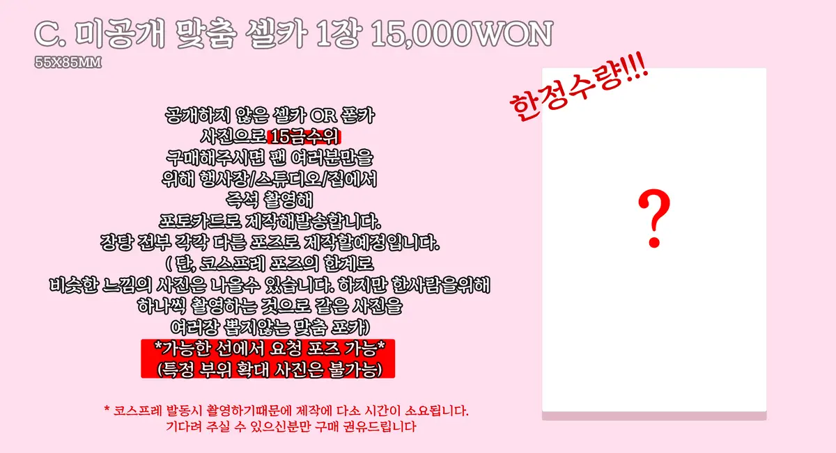 C. 미공개 맞춤 셀카/반신/전신 (55x85mm size)