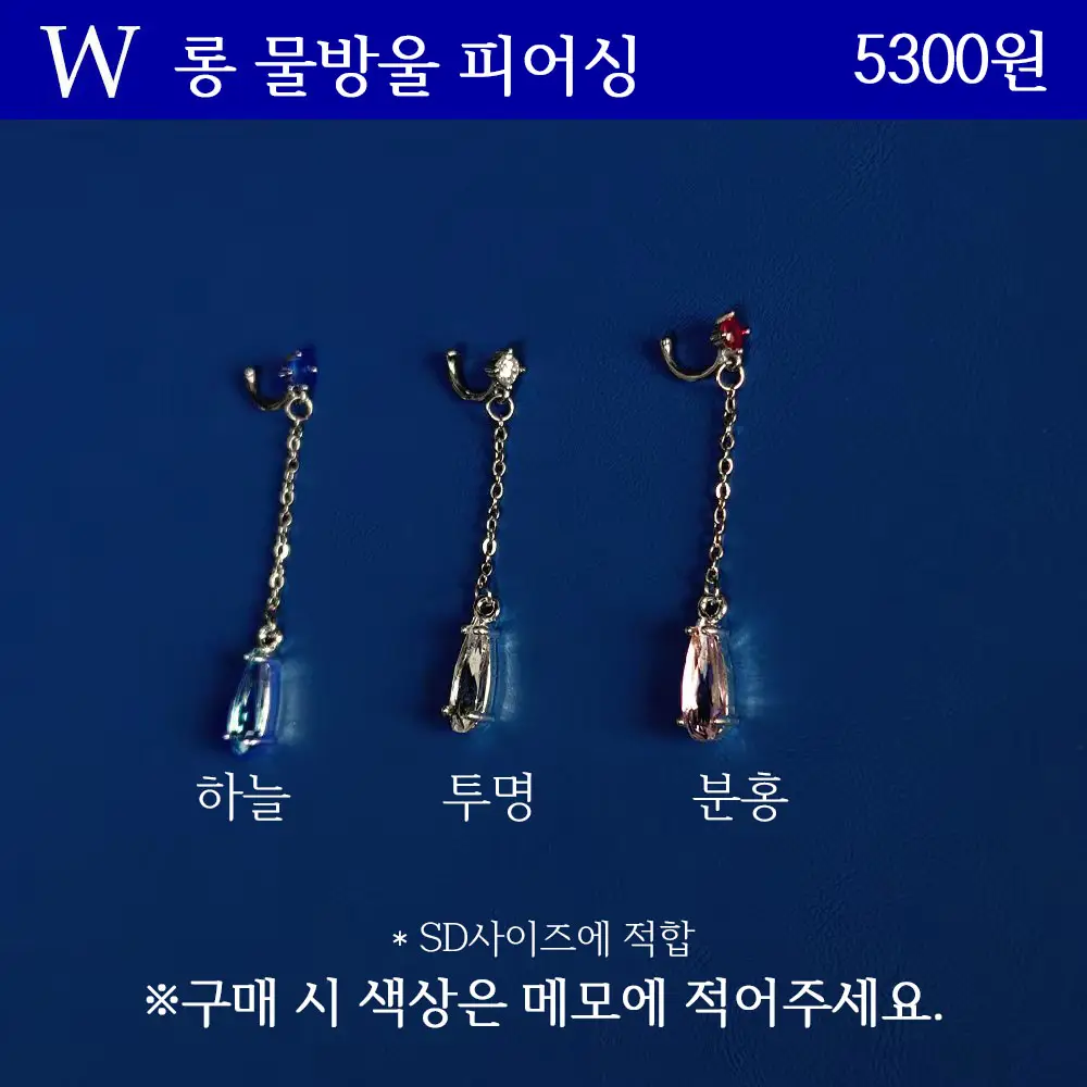 (예시) 수량 2개 구매 = 'W : 투명/분홍'