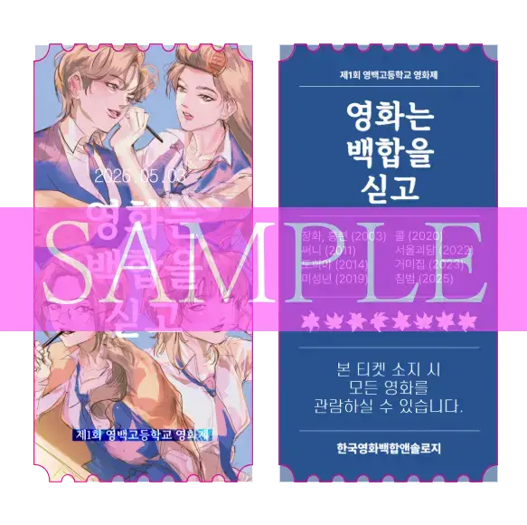 선입금 특전으로 영백고등학교 영화제 티켓을 드립니다.