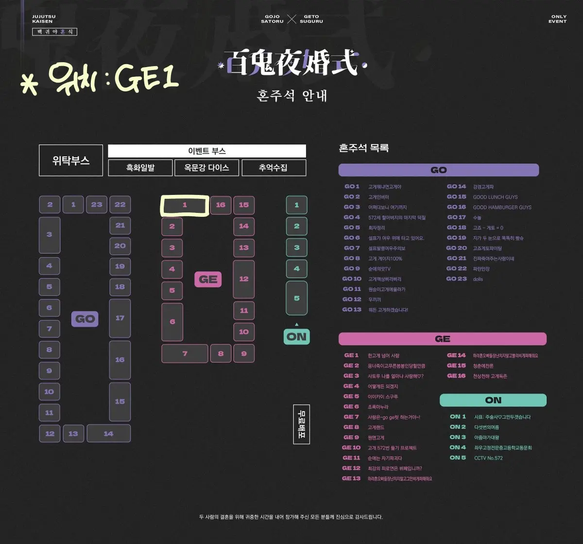 GE1 이며 이벤트 부스의 옥문강 다이스의 맞은편입니다