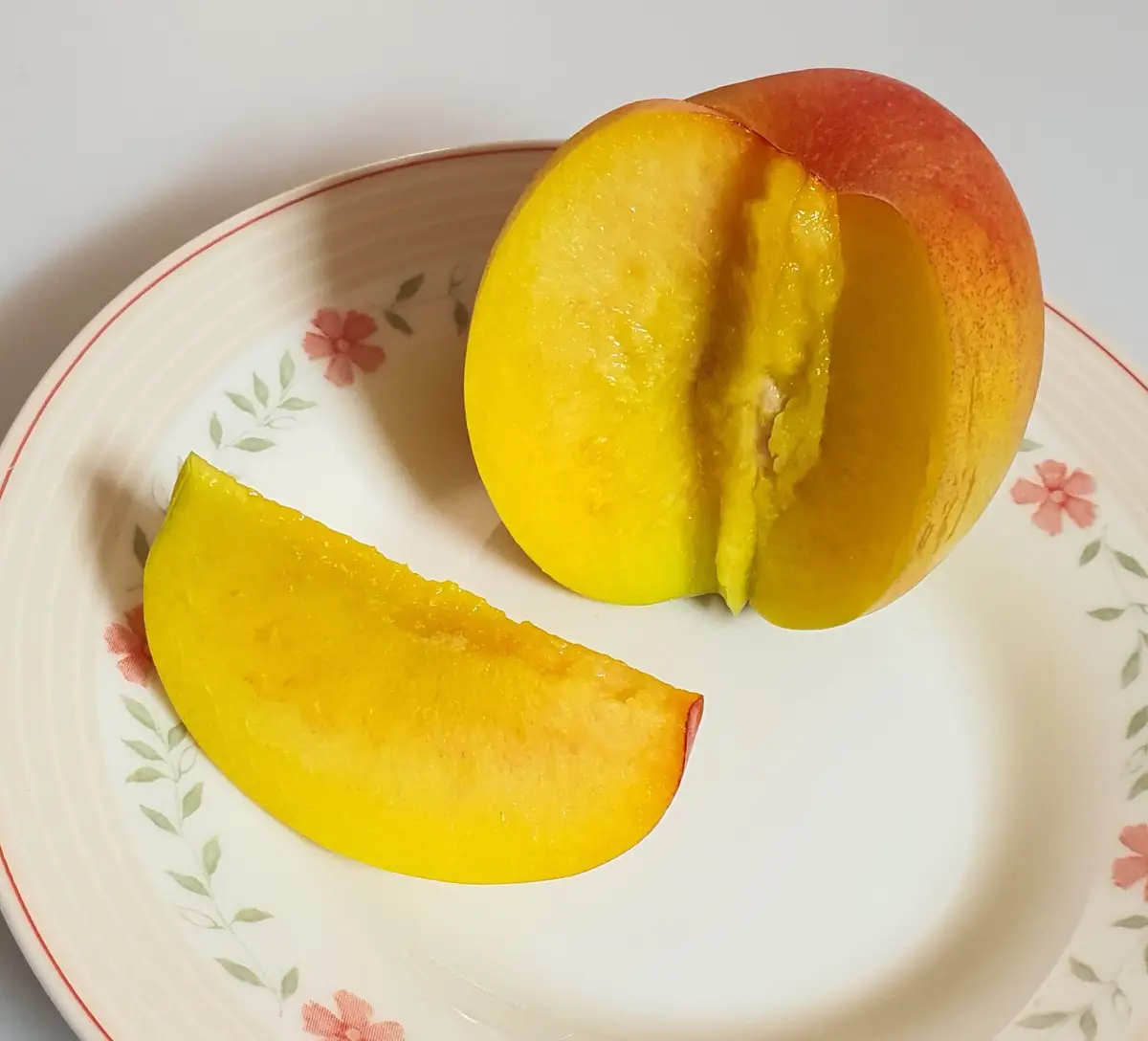 과육이 후숙 될수록 말랑해지는 황도입니다. 털이 있는 품종입니다.