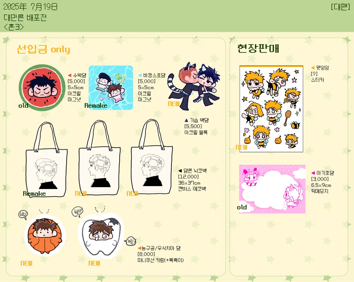 선입금으로 분류된 굿즈들은 선입금 기간이 지난 이후 추가구매가 불가능하니 참고바랍니다.