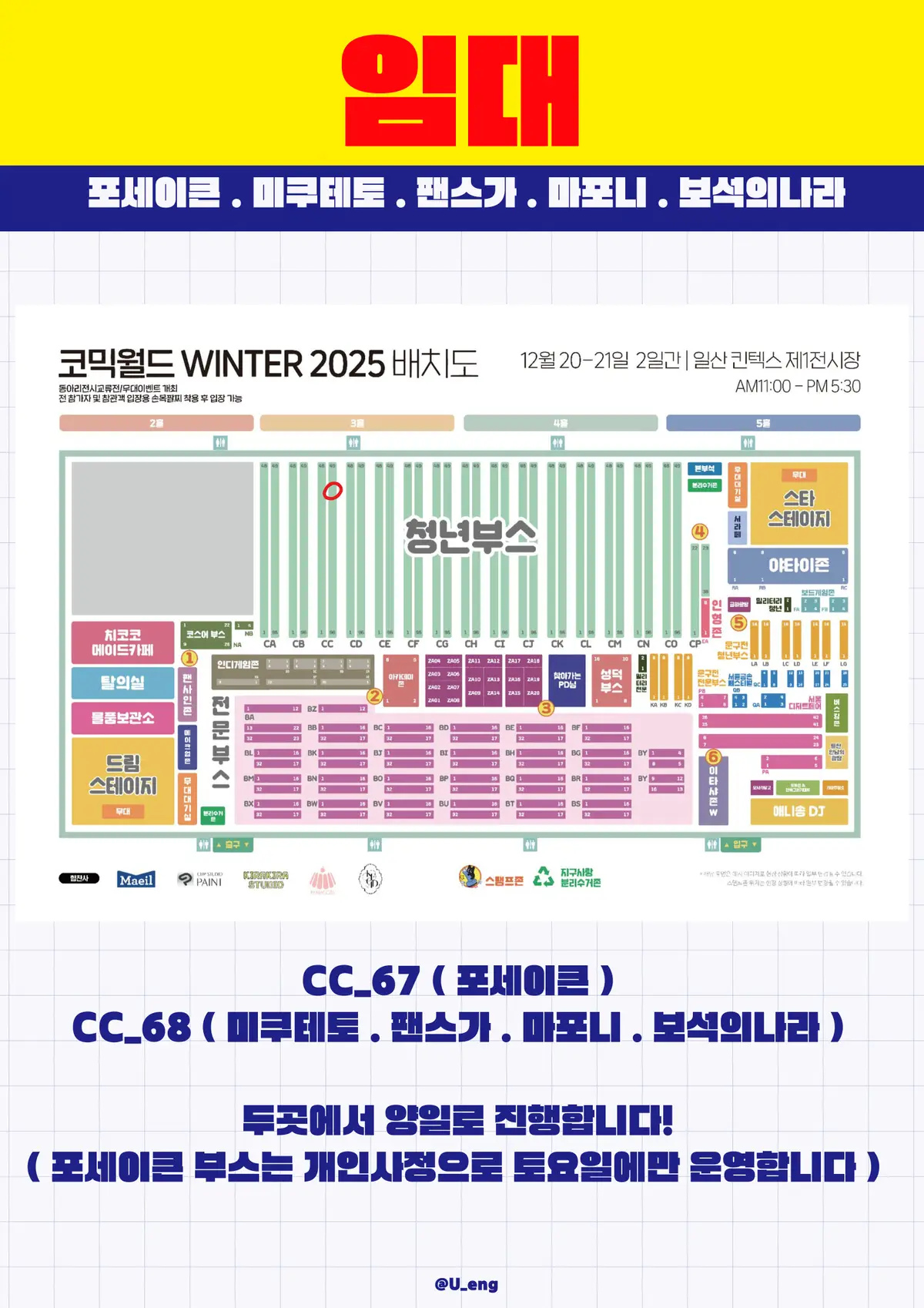 CC_67, 68 양일 참가합니다 ( 포세이큰의 경우 토요일만 )