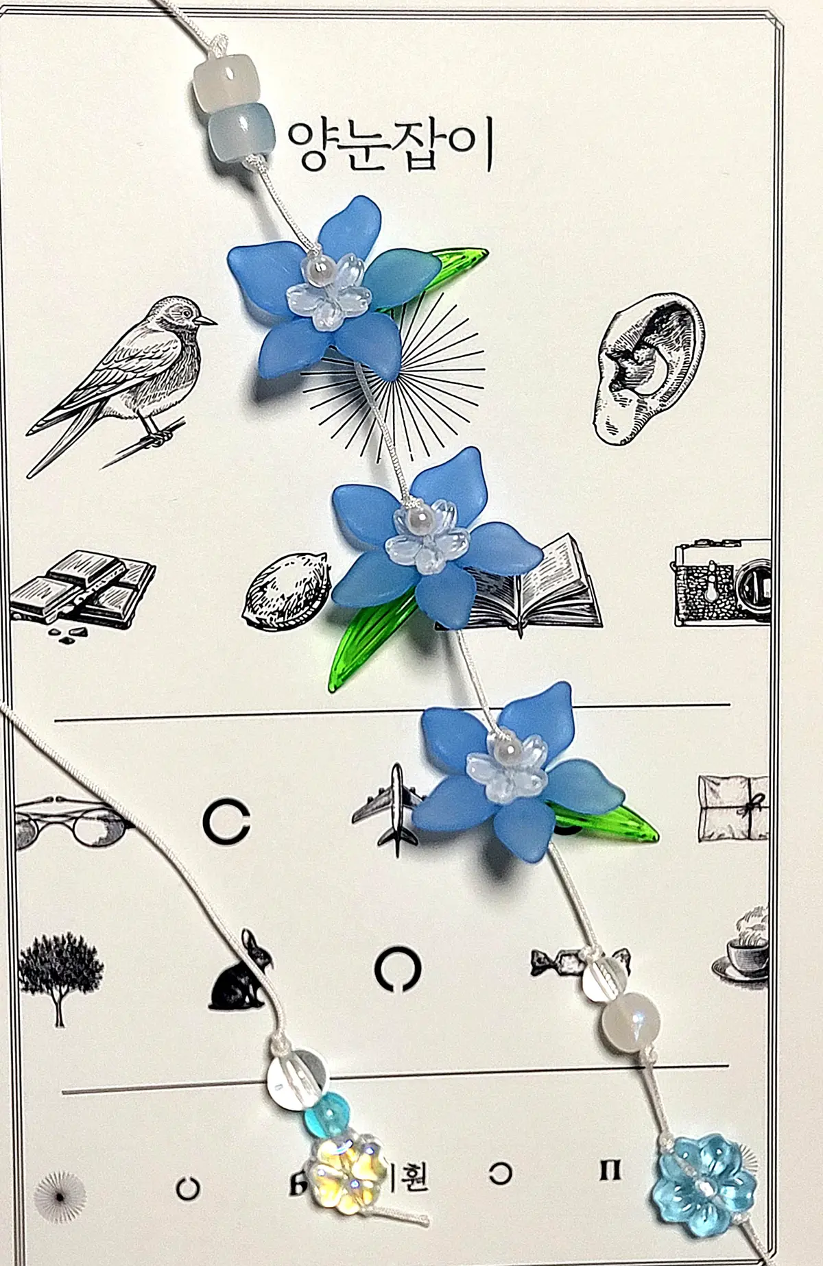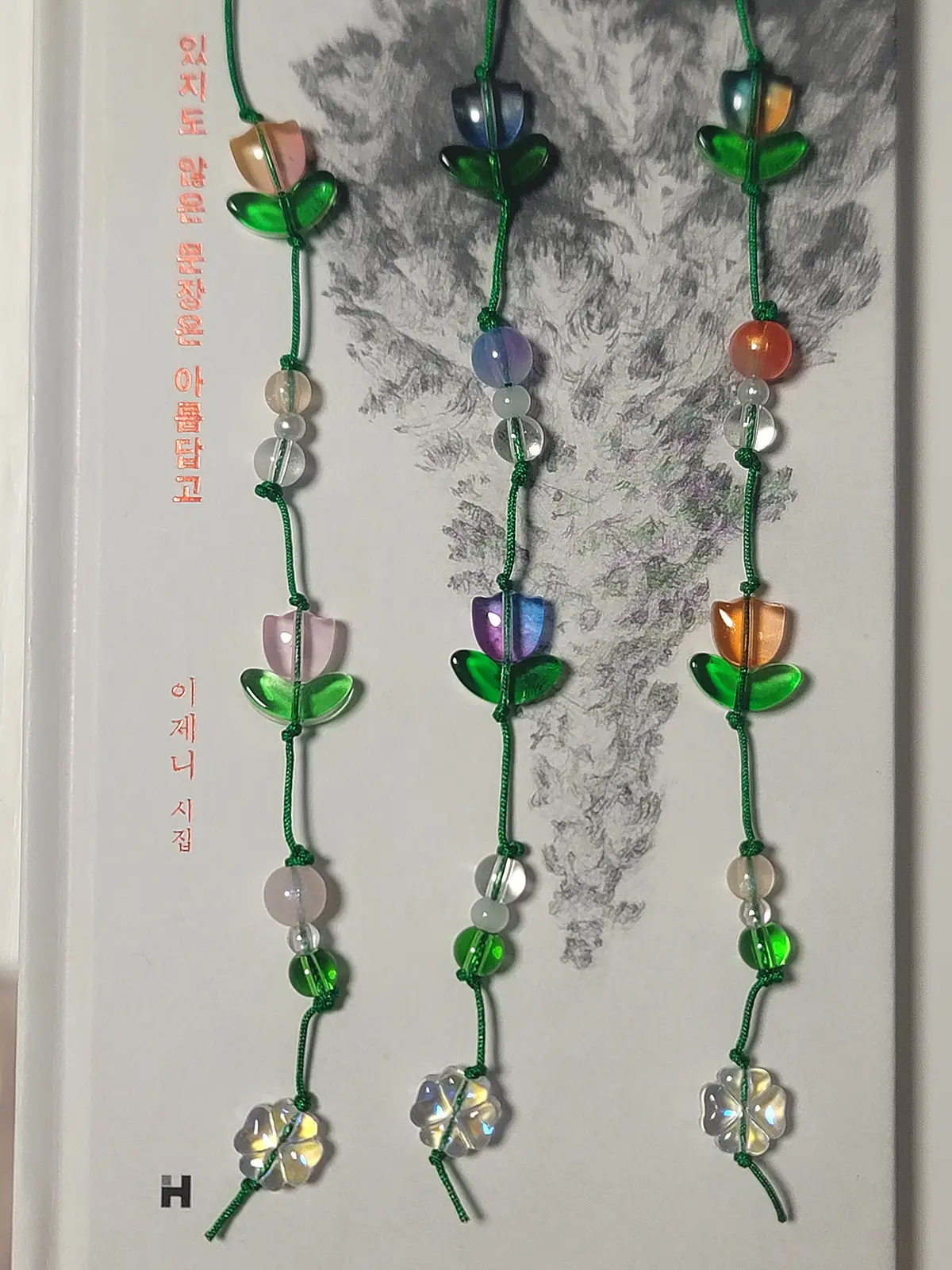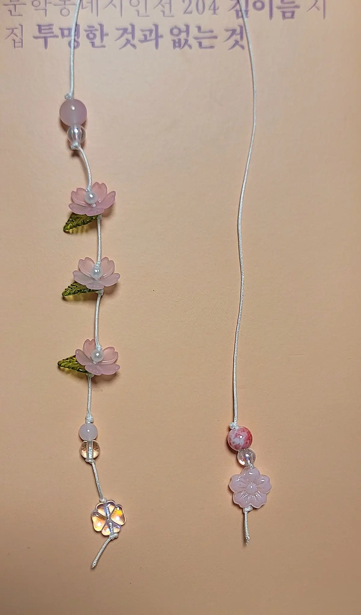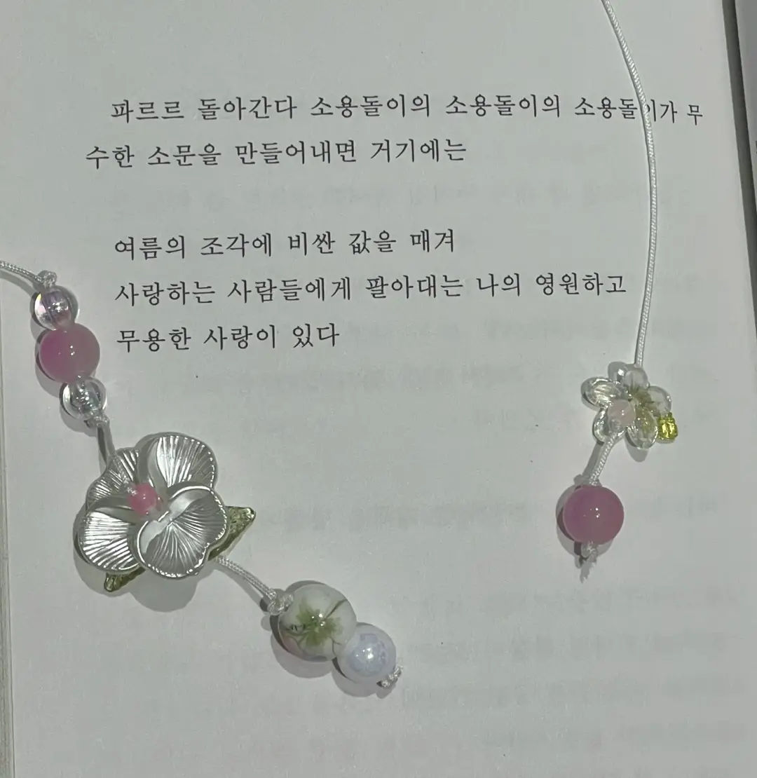 끈갈피 시작 부분 비즈가 같은 색상의 구형 비즈로 변경이 되었습니다.