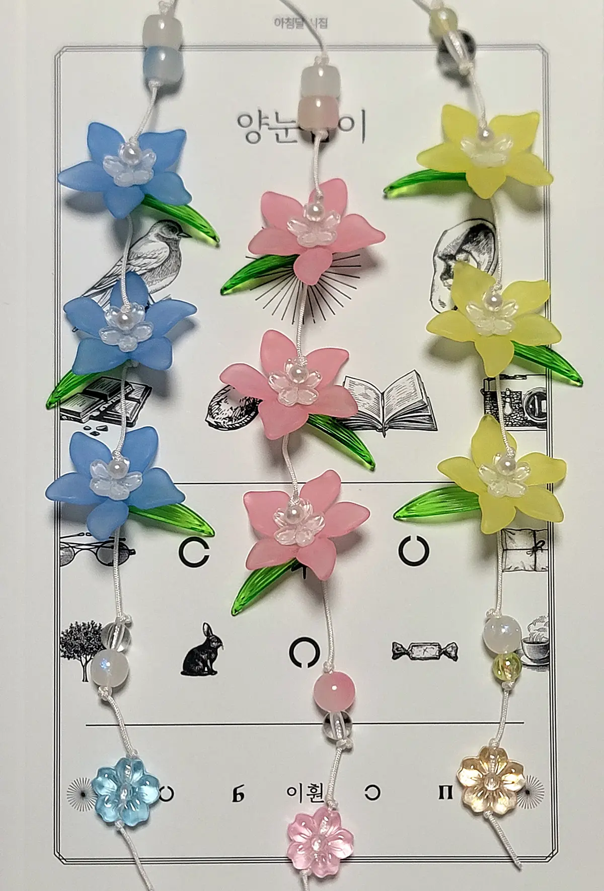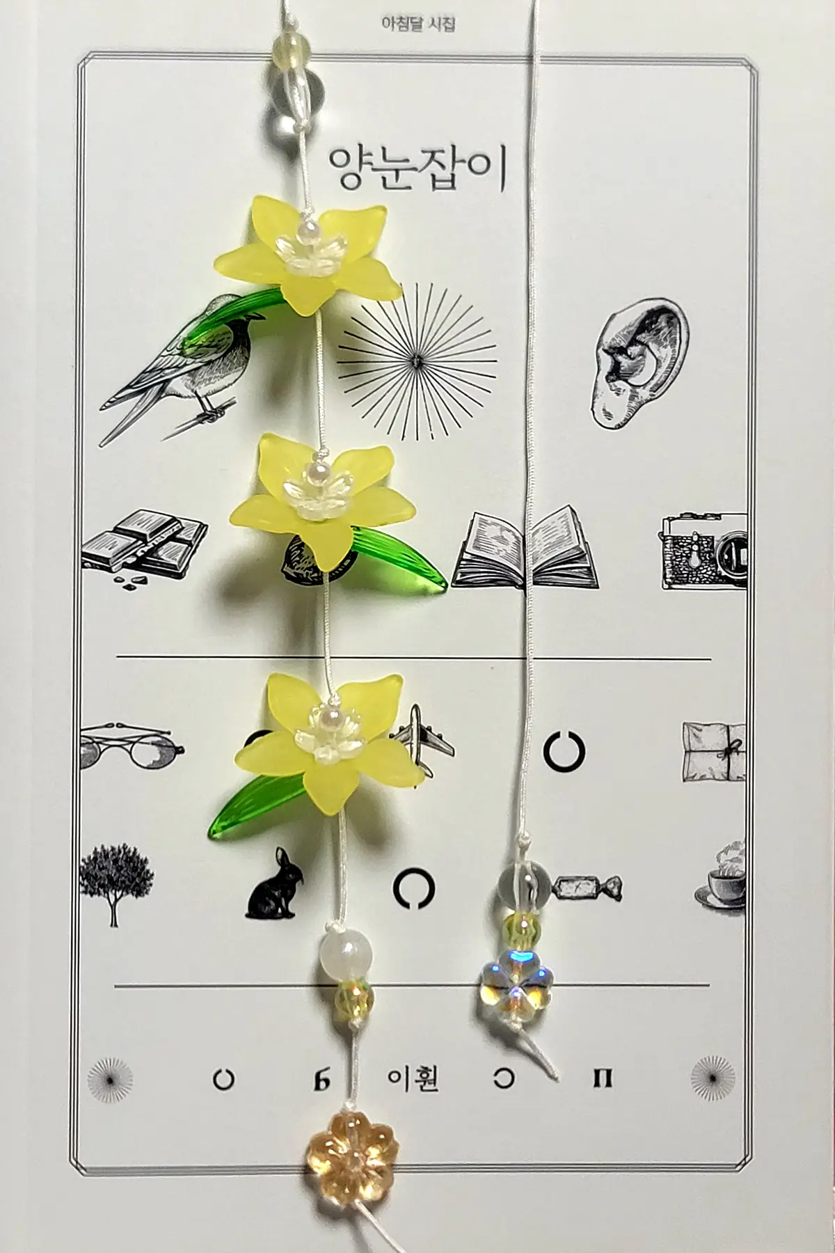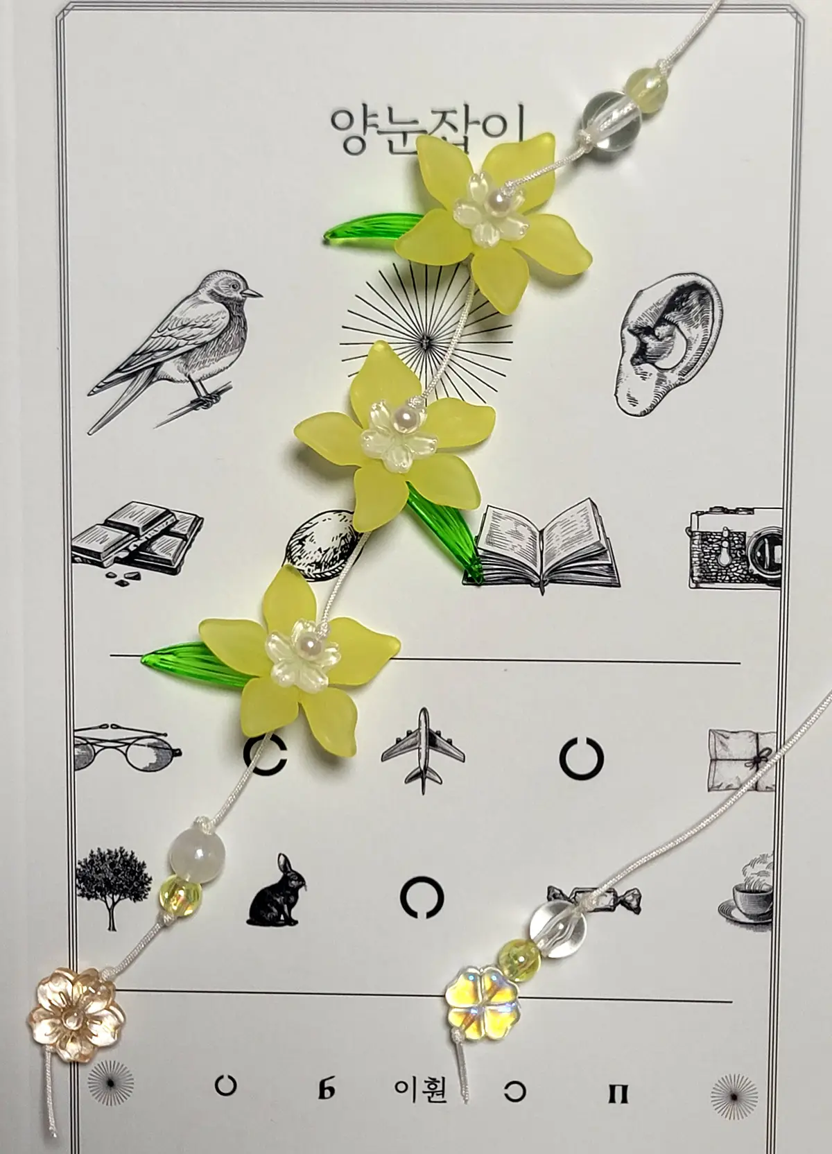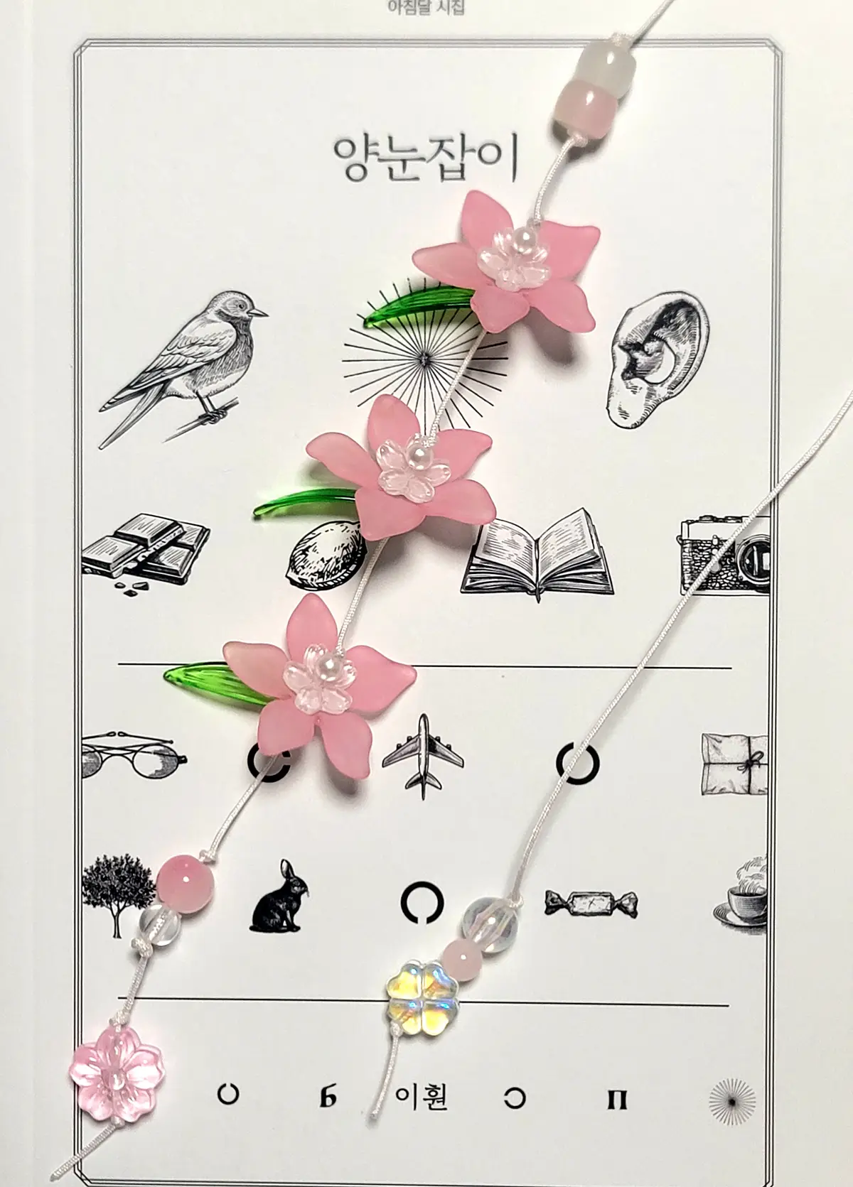 끈갈피 시작 부분 비즈가 같은 색상의 구형 비즈로 변경이 되었습니다.
