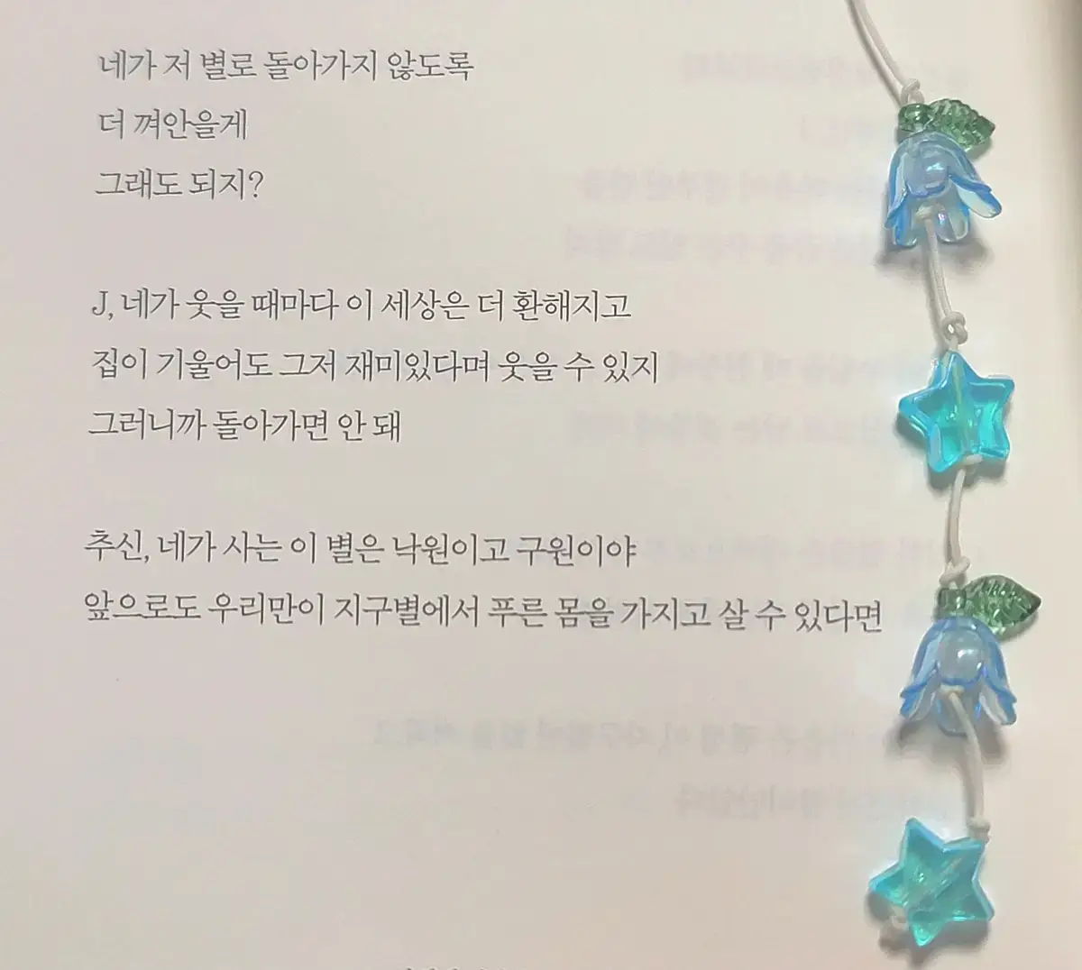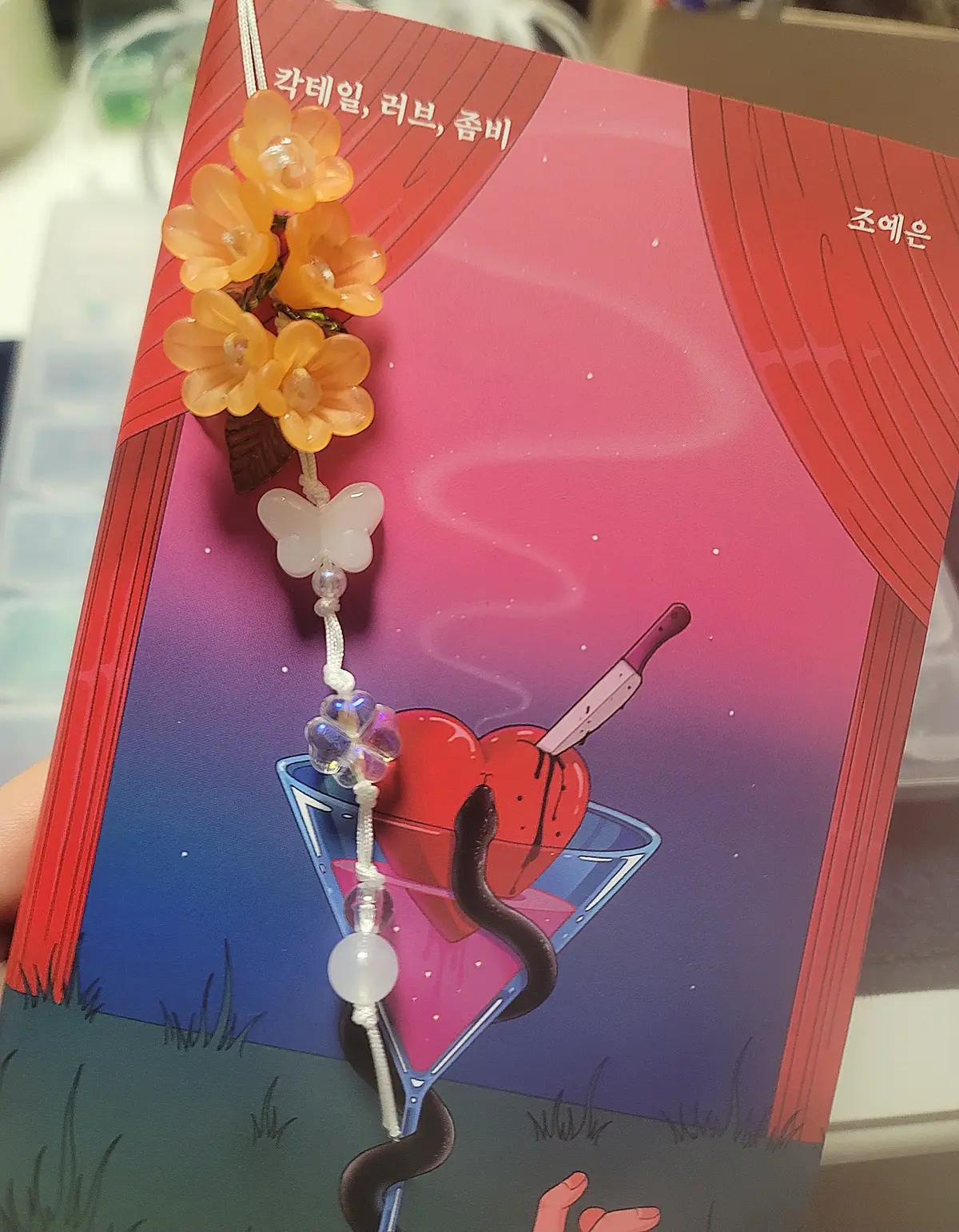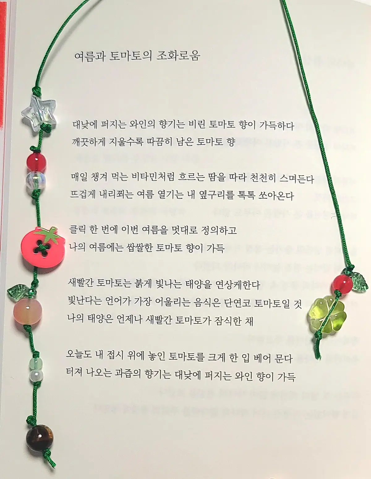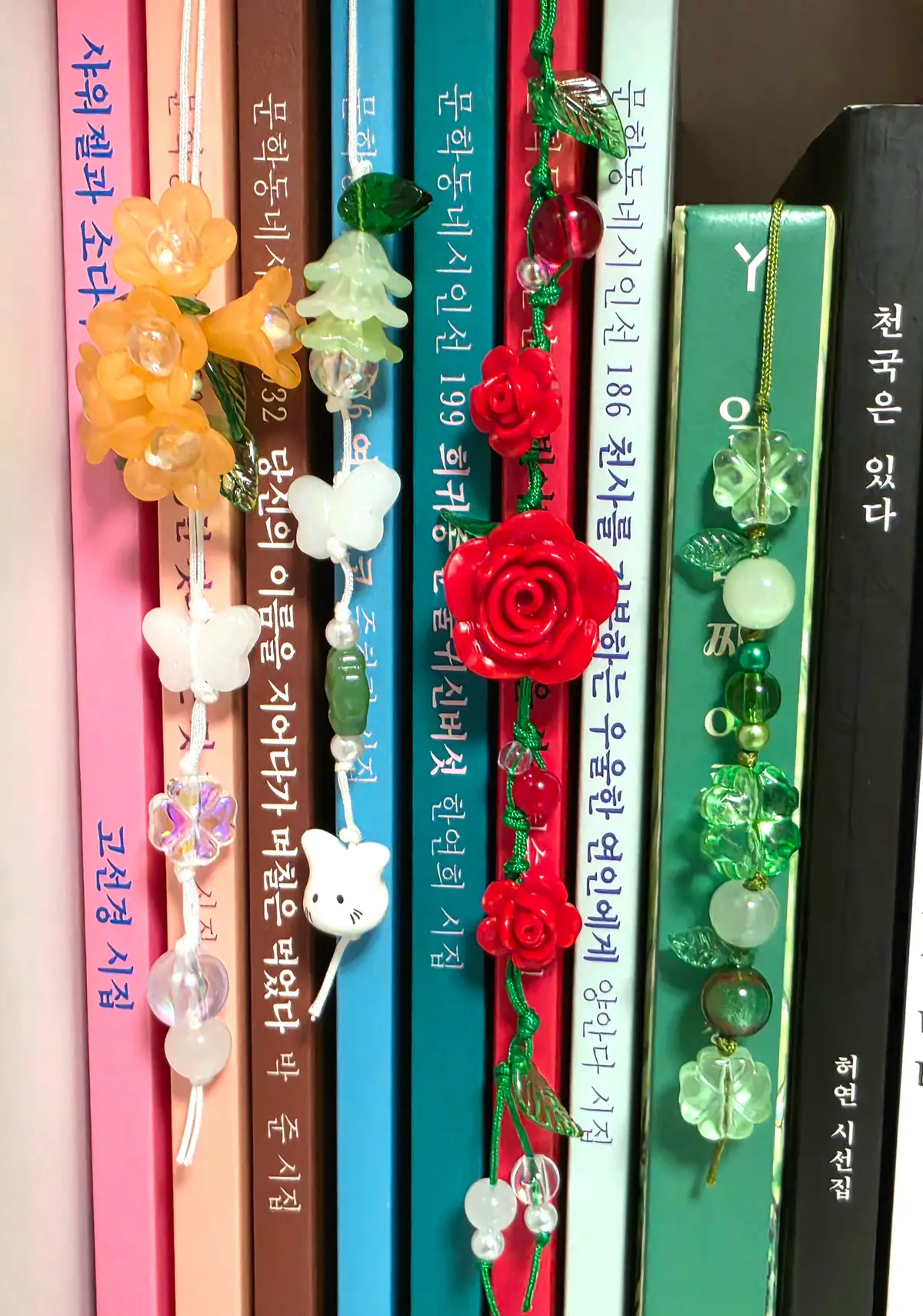 끈갈피 시작 부분 비즈가 같은 색상의 구형 비즈로 변경이 되었습니다.