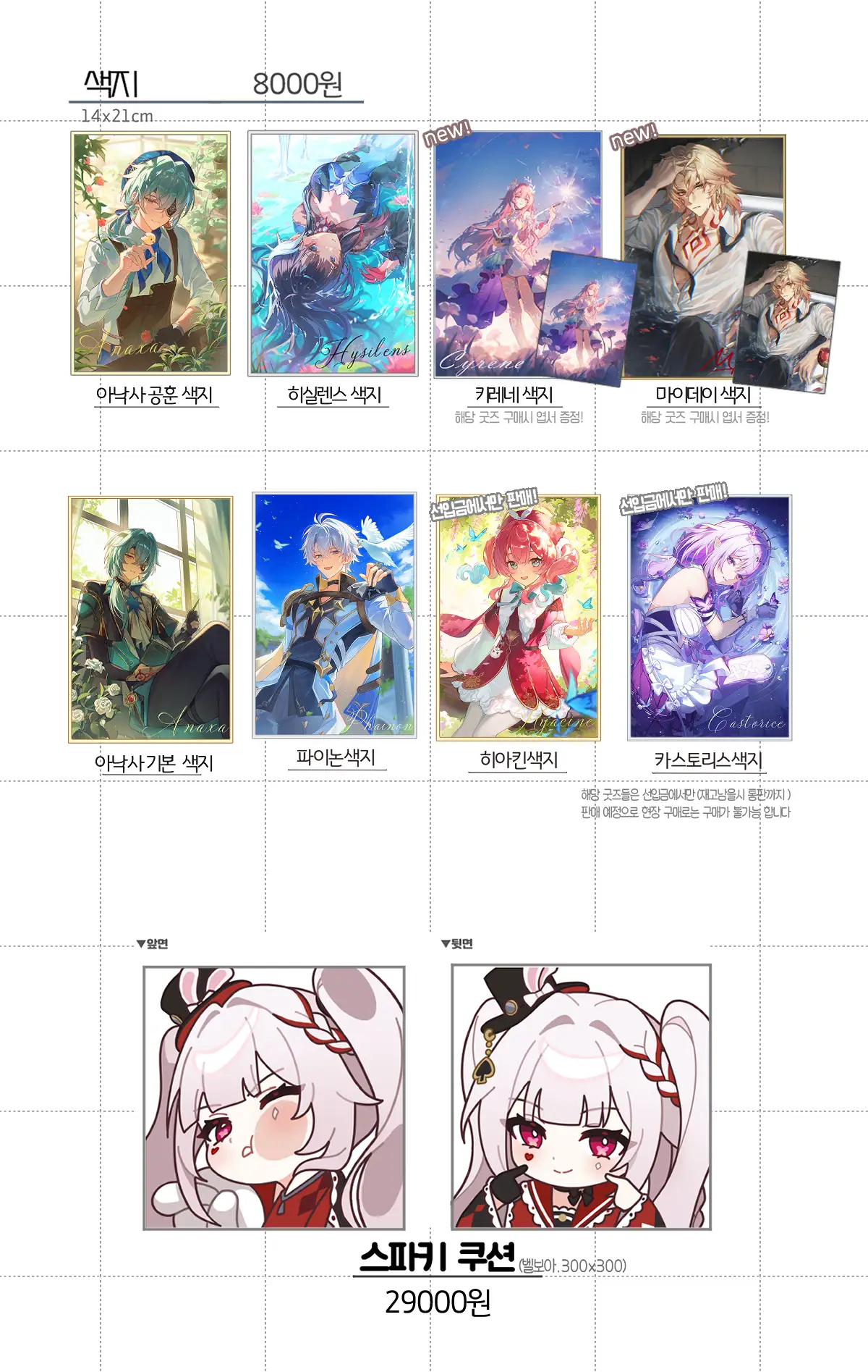 -선입금은 색지,아크릴 만 진행합니다!나머지 굿즈들은 현장 판매,통판으로만 진행될 예정입니다!