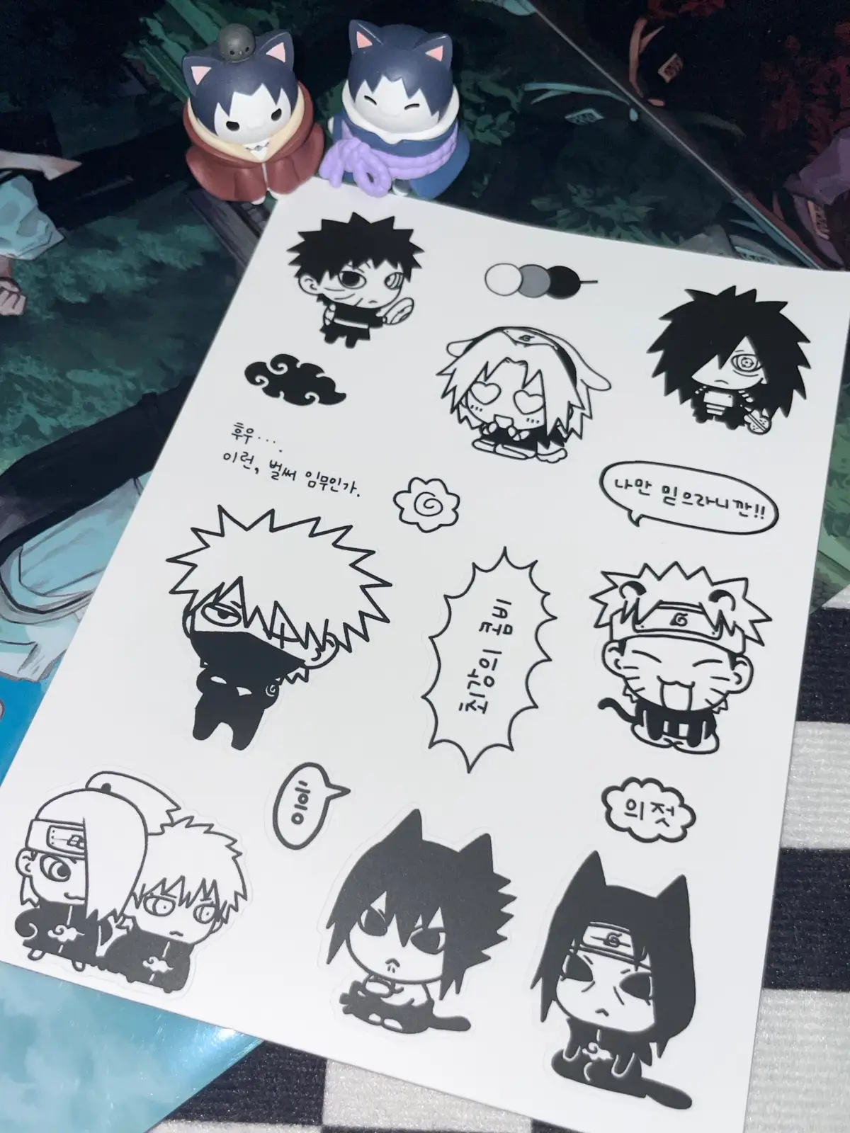 1.나루토 조각스티커 1탄 (주문 실수로 조각이 판스티커 형태에요ㅜ.ㅜ)