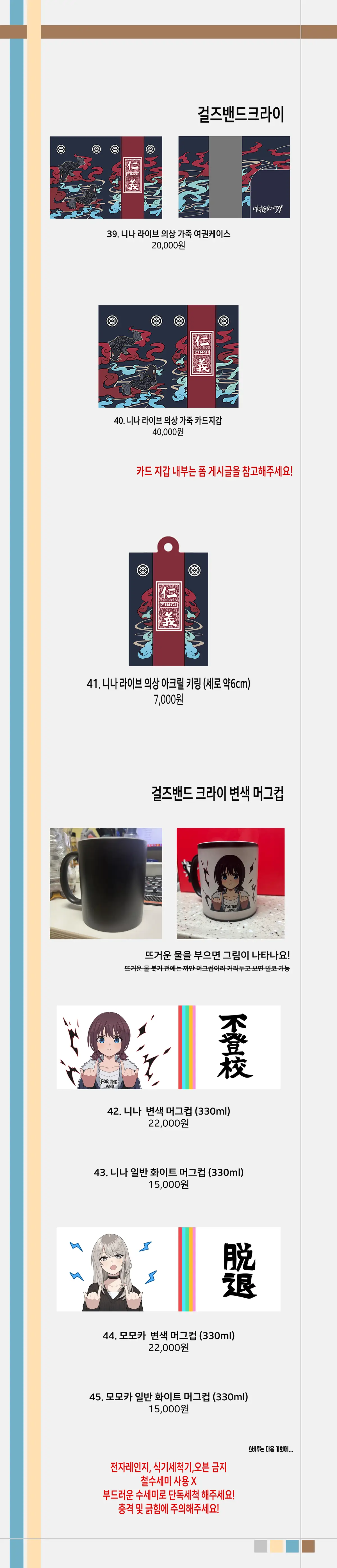 1. 주문 제작 상품으로 폼이 종료된 뒤 취소 및 환불은 품목 별로 수수료 5천 원이 발생합니다!
