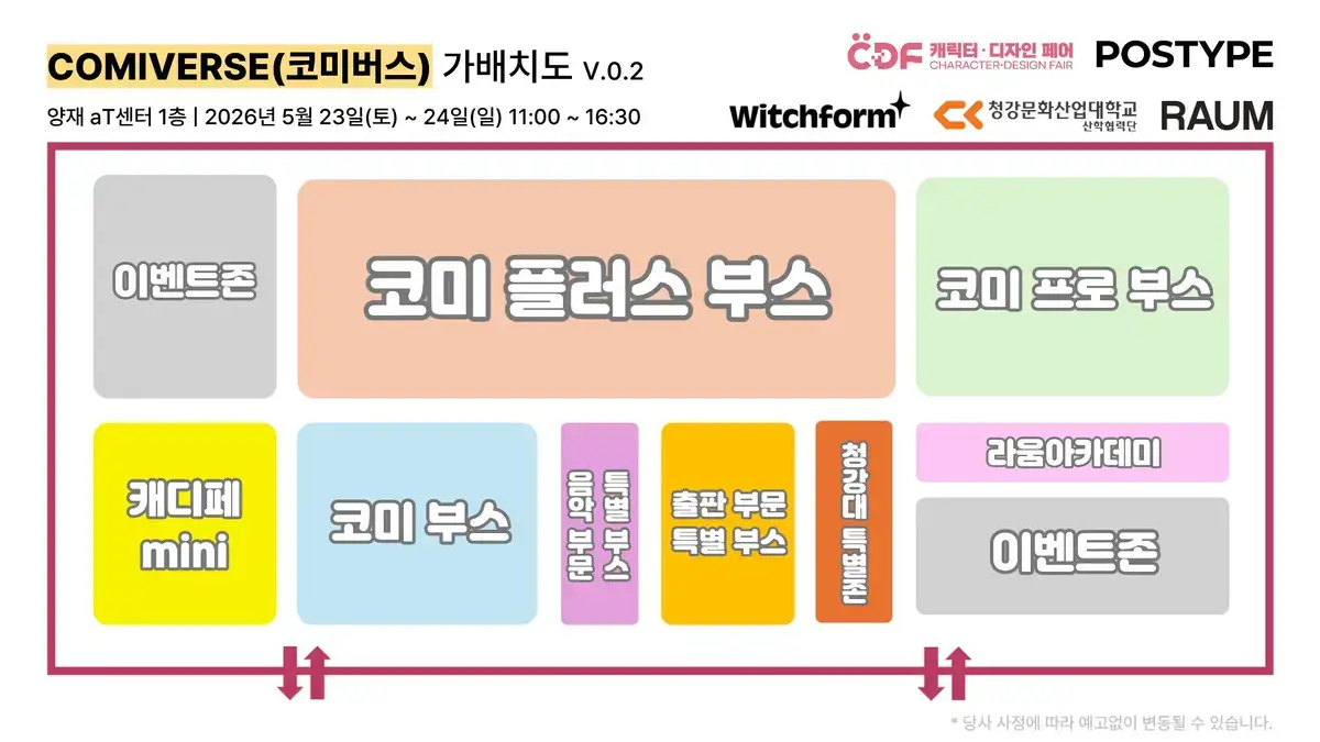 코미 부스/코미 플러스 부스 비용은 양일 기준 10만원(VAT포함)입니다.