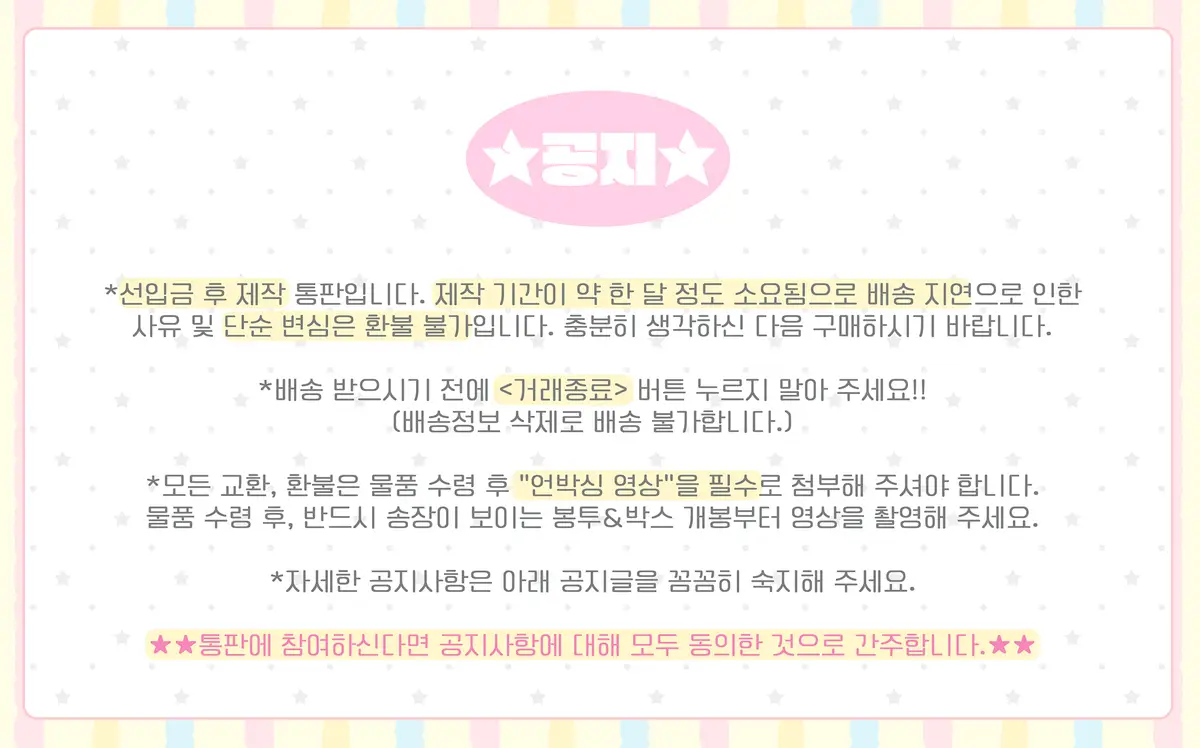 반드시 공지를 꼼꼼히 숙지하신 다음 주문해주세요.