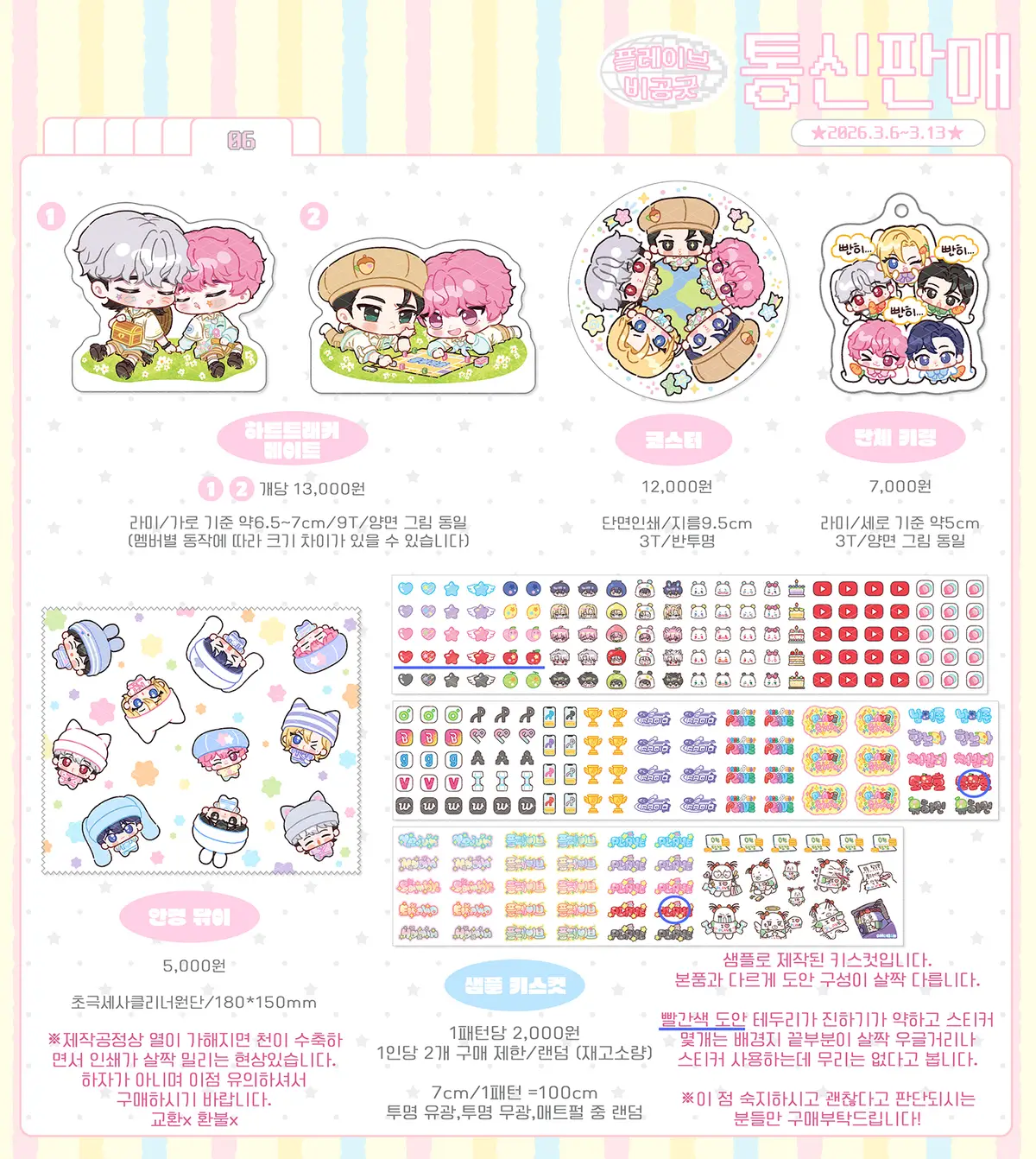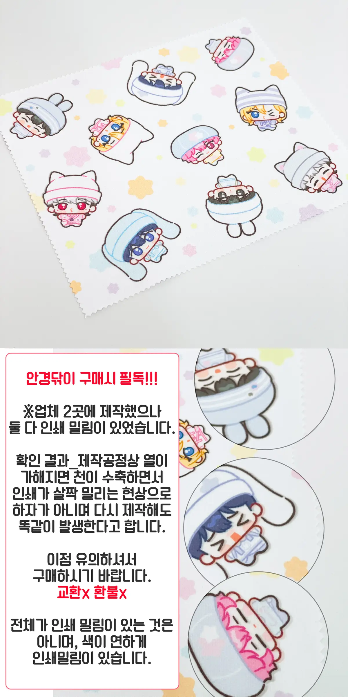 -교환 가능 사유 : 수령하신 물품 개봉 후 바로 확인되는 아크릴 굿즈의 깨짐, 아크릴 안 인쇄 오류, 지류 굿즈의 찢어짐만 해당됩니다.