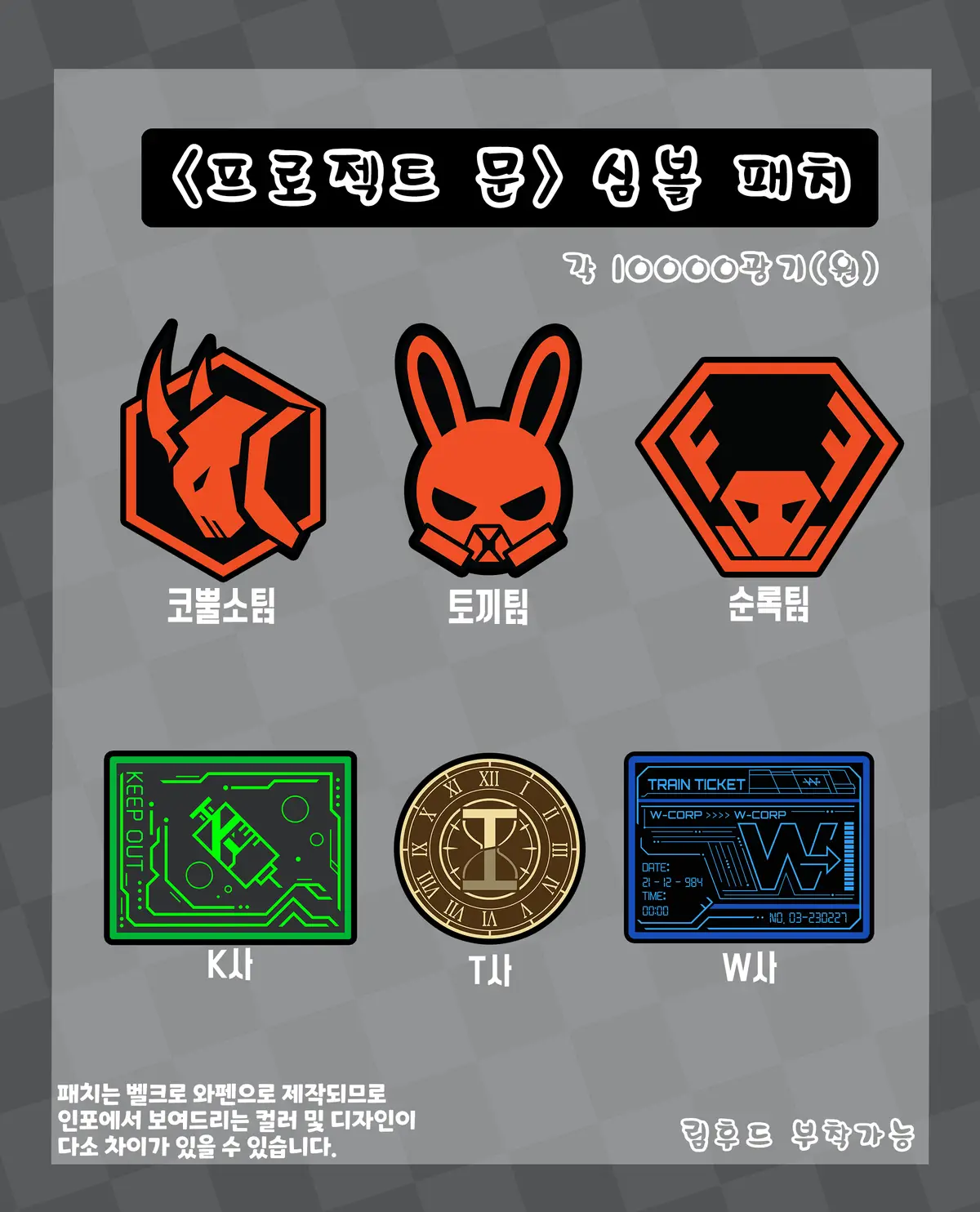 ※패치는 벨크로 와펜으로 제작되므로 인포에서 보여드리는 컬러 및 디자인이 다소 차이가 있을 수 있음을 알려드립니다.
