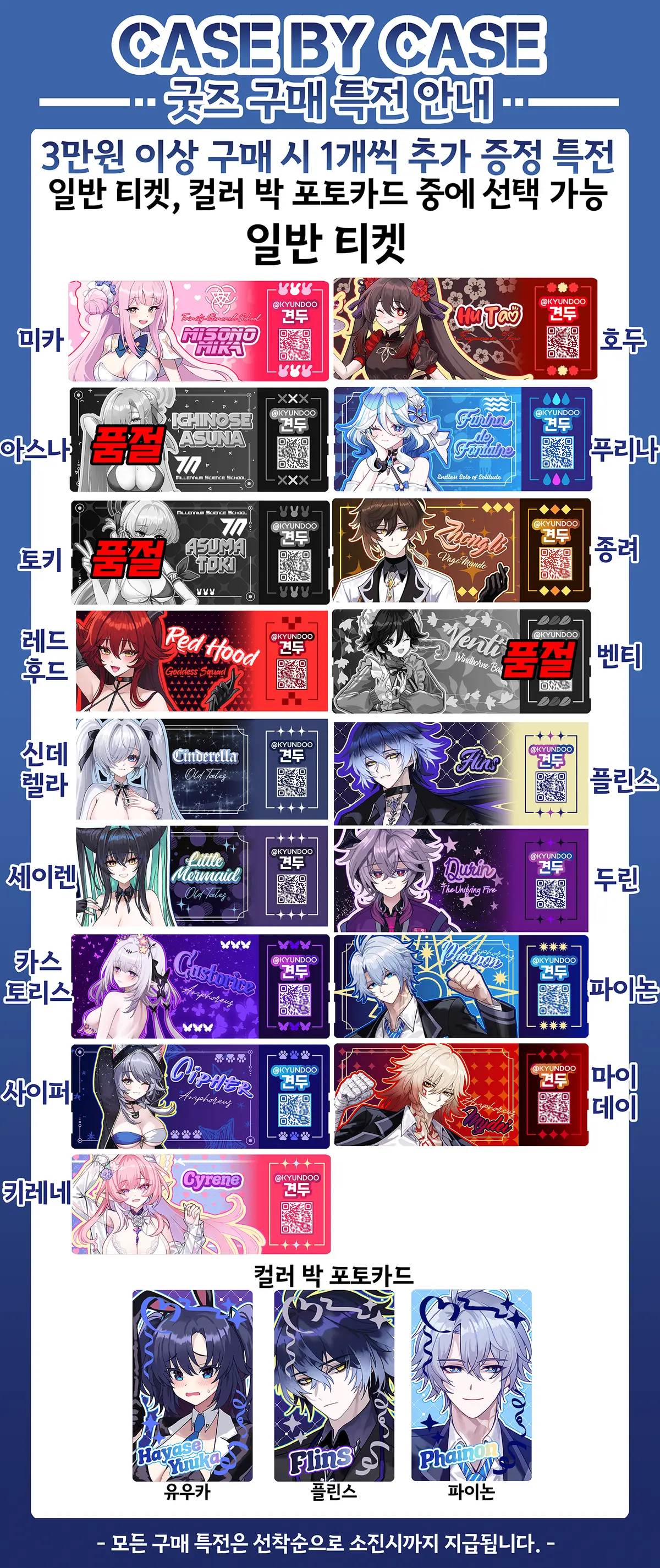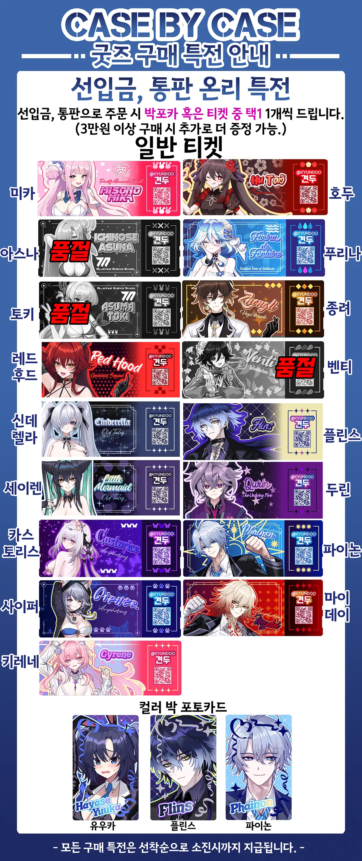 (신규 굿즈 혹은 재판 굿즈는 전부 행사 이후 배송이 가능합니다. 할인굿즈는 품절O 재판X)