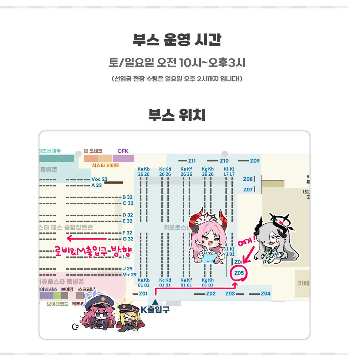 구매자 분들께서는 반드시 위 부스 운영시간 내로 방문하셔서 주문하신 상품들을 수령하셔야 합니다.