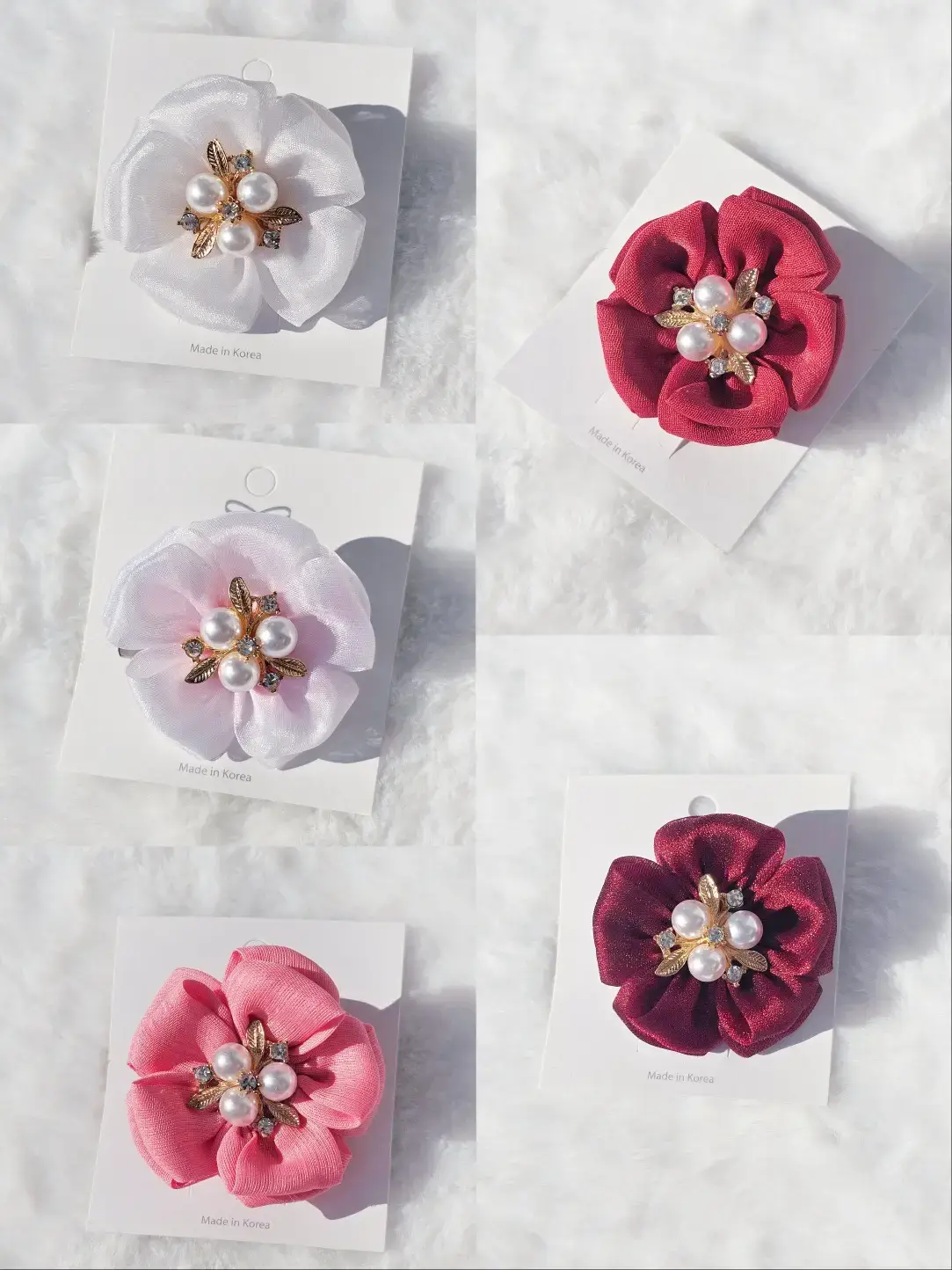 <매화꽃한송이> 이른 봄의 추위를 무릅쓰고 제일 먼저 꽃을 피우는 매화 매화의 단아함을 담았습니다. 지름 약 5cm *색상 ▪︎백매화 / 화이트_크리스탈 오간자 ▪︎백매화 핑크그라데이션 / 백매화에 핑크그라데이션도색_오간자 ▪︎흑홍매화 / 와인색_크리스탈 펄 오간자 (이번 폼에서는 재고판매로 3가지만 준비되어 있습니다.) *착용방식/브로치&머리핀, 뒤꽂이 원단 재단부터하고 손바느질로 한땀한땀 이어서 만드는것이라 손바느질 자국이 있을 수 있으며 꽃모양, 크기에는 약간의 차이가 있을 수 있습니다. 접착하는데 공예용강력글루건을 사용하고 있어 가끔 조금 튀어나오거나 묻을 때가 있습니다. 이는 하자가 아니오니 예민하신 분께서는 구매를 피해주세요 |