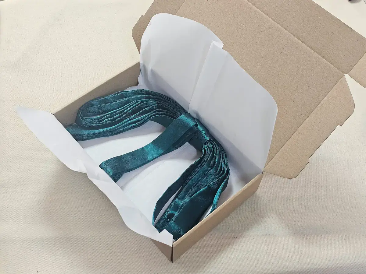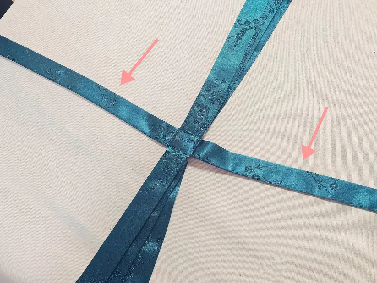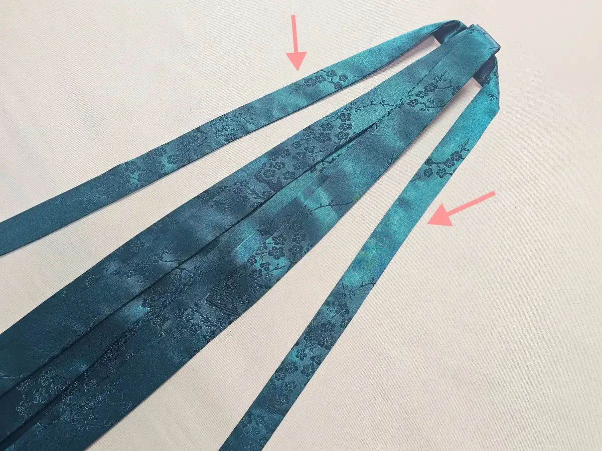끈댕기가 길기때문에 접어서 포장해 드리고 있습니다
